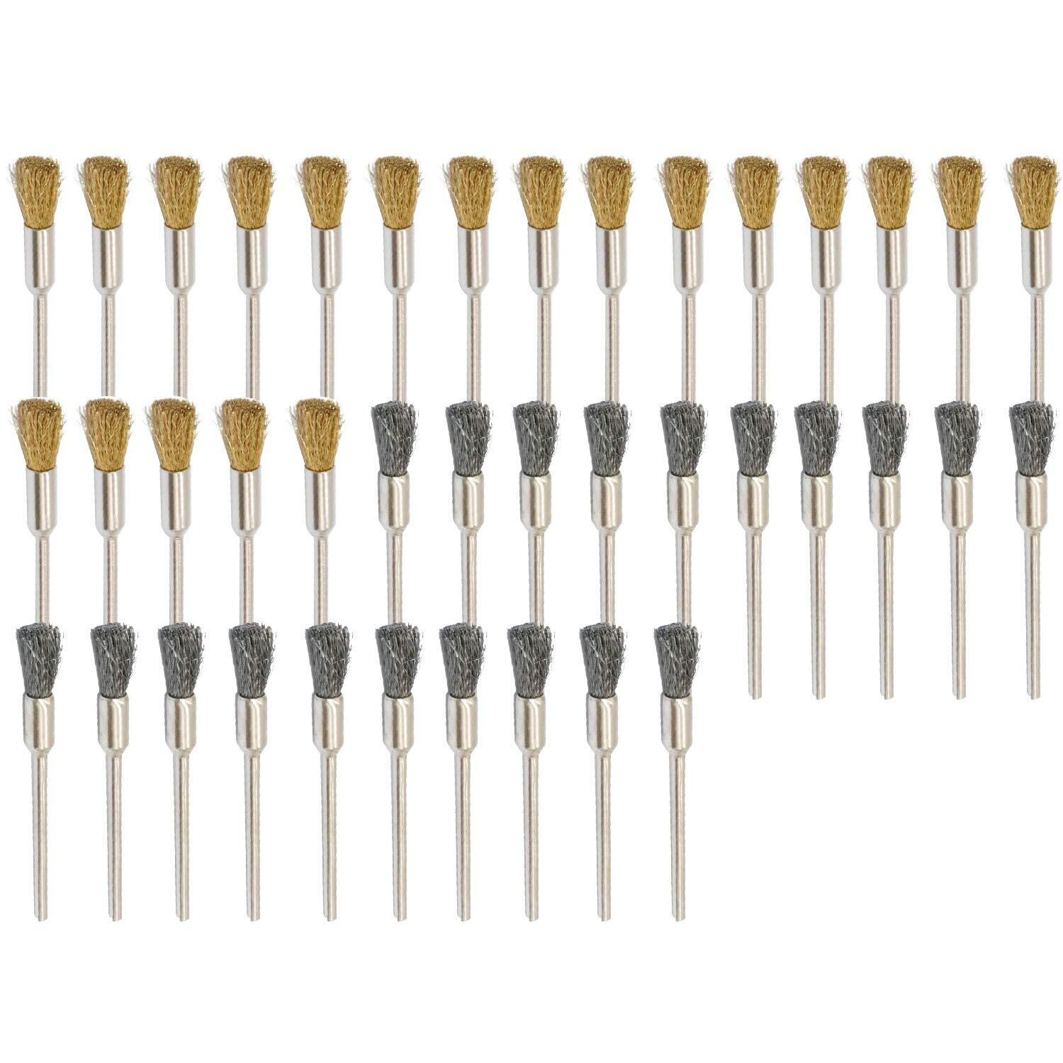 JINTONG リューター ブラシ 2種類真鍮ワイヤーブラシ& 鋼ブラシ 2.35mm軸 40個入り 筆型 研磨ブラシ 研削ブラシ リューター ビット ミニルーター ブラシ 回転ツール アクセサリー