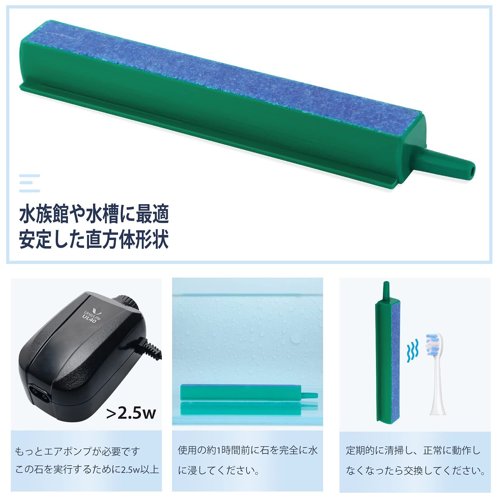 ミネラル素材:このエアストーンは、緑色のプラスチックベースの天然ミネラル素材でできており、愛らしい魚の健康に影響を与えません。