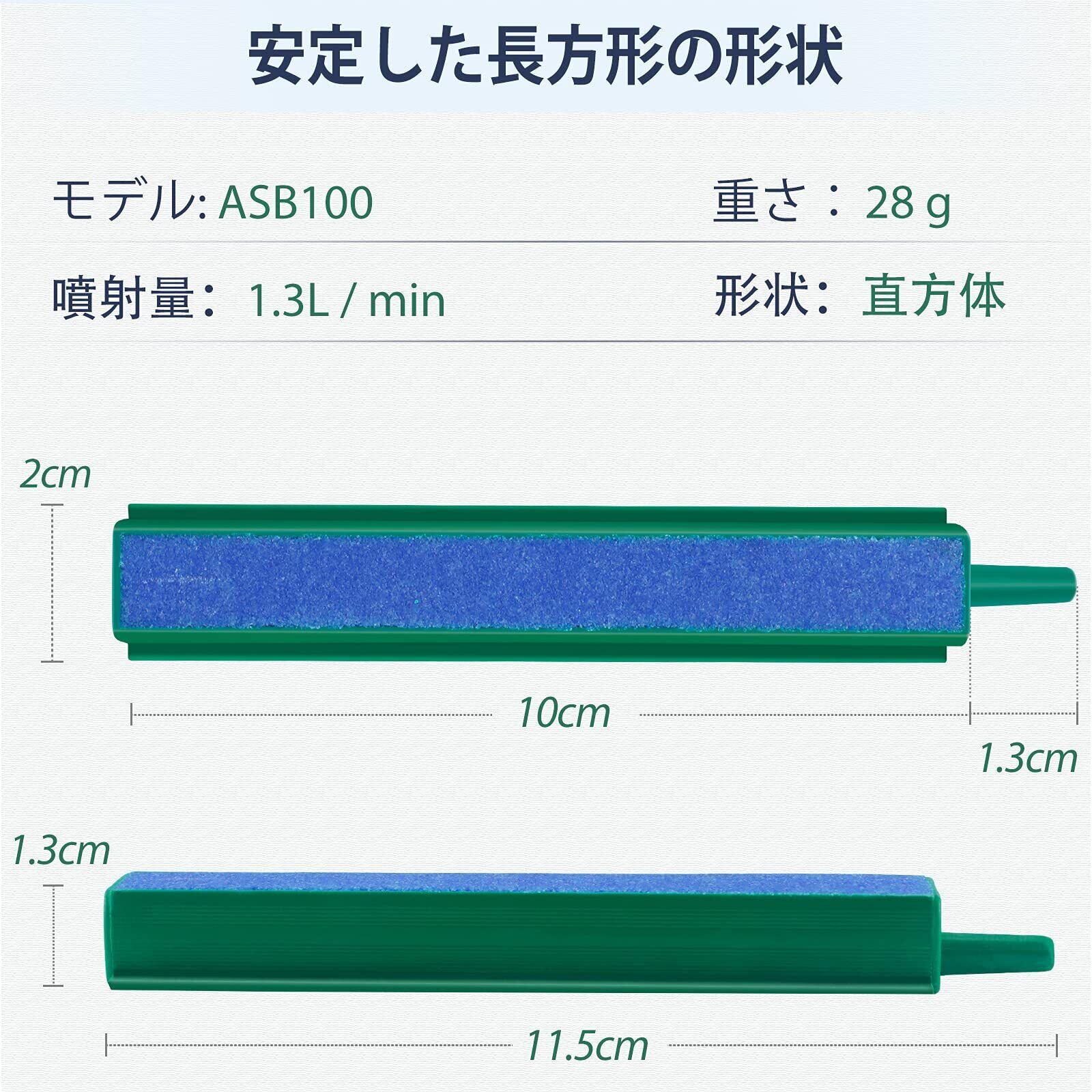 モデル:ASB100; 噴射量:1.3L /分; 推奨エアポンプ出力:> 2.5 W; 標準IDエアラインチューブ:0.5CM。 水族館や水槽に適しています。