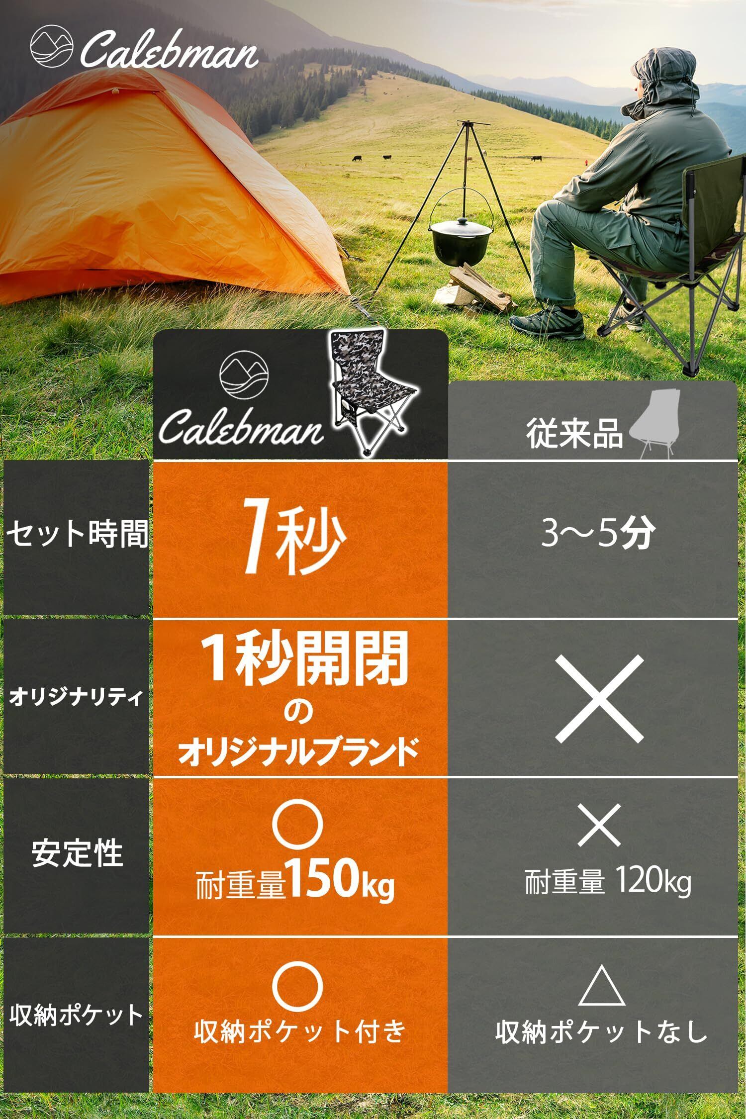 【特価セール】Calebman アウトドアチェア 折りたたみ 【1秒開閉】 超軽量 コンパクト イス 椅子 耐荷重150kg ポケット付き 背もたれ付 収納袋付 釣り 登山 携帯便利 キャンプ椅子 (黒)