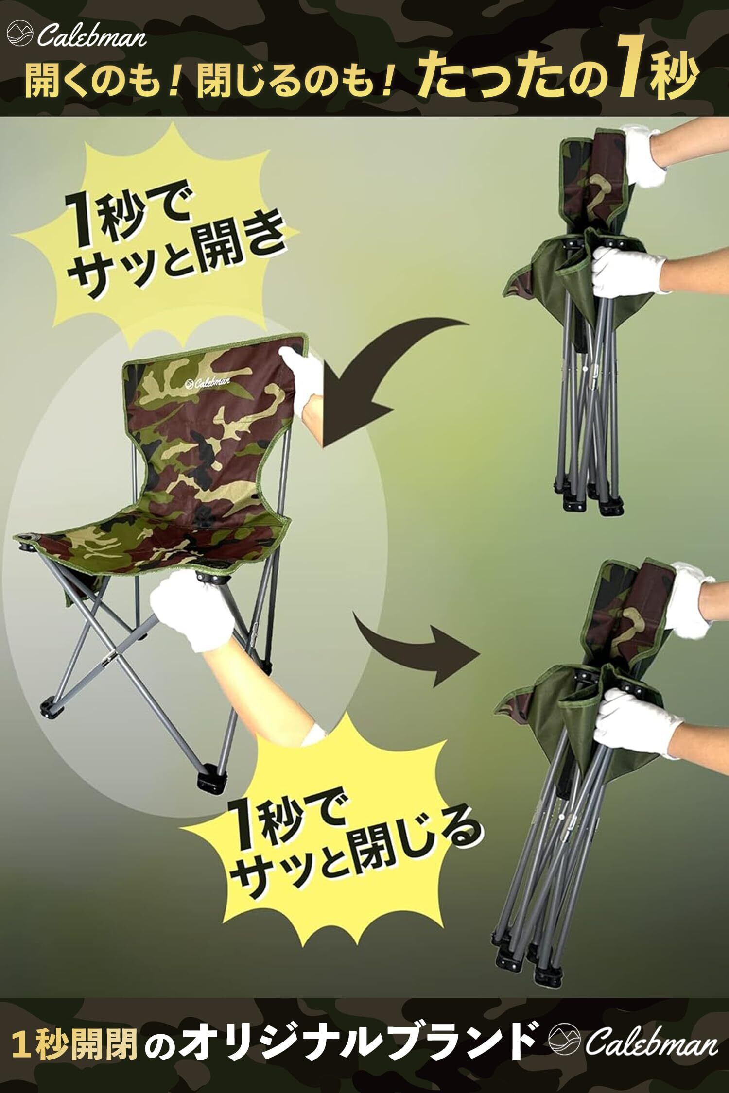 Calebman アウトドアチェア 折りたたみ 【1秒開閉】 超軽量 コンパクト イス 椅子 耐荷重150kg ポケット付き 背もたれ付 収納袋付 釣り 登山 携帯便利 キャンプ椅子 (黒)