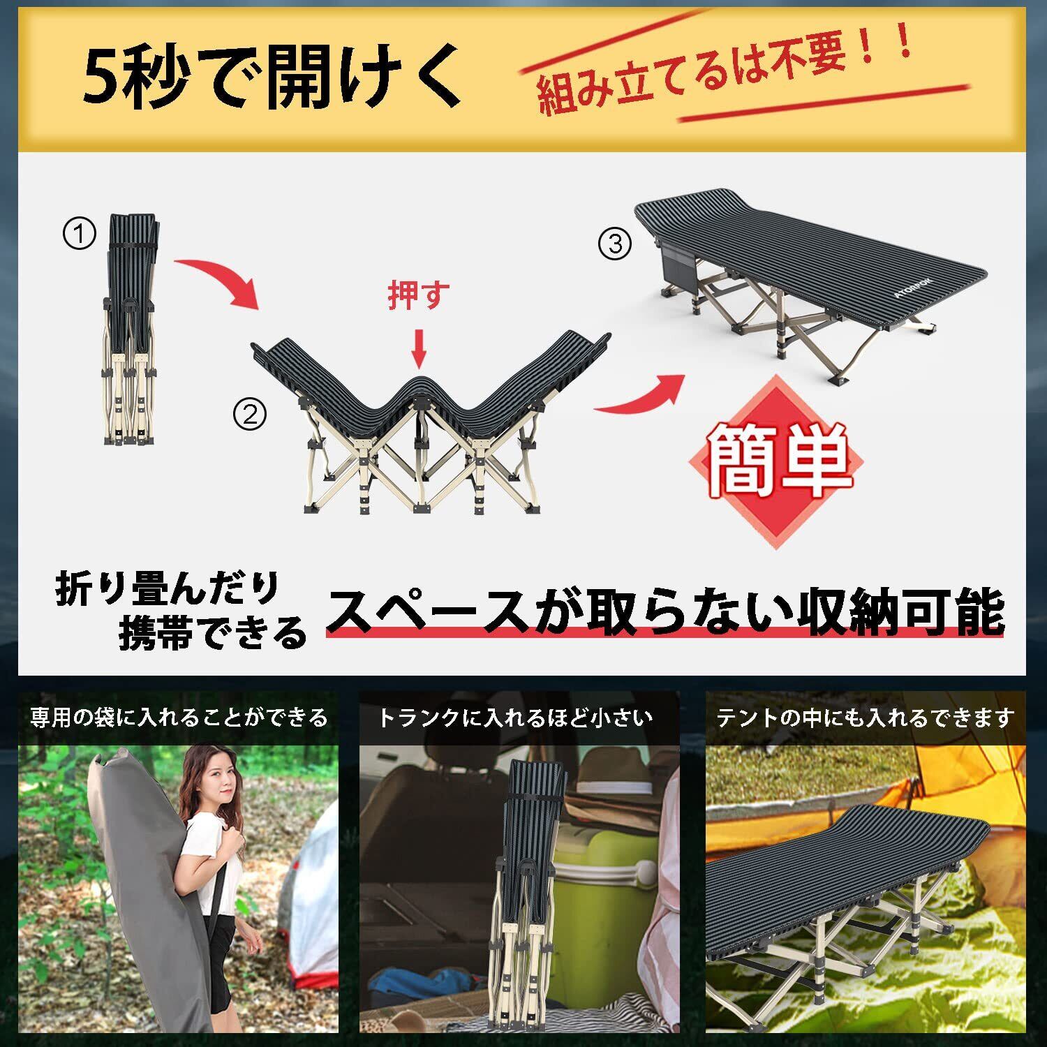 ATORPOK 折りたたみベッド コット こっと 折り畳み式ベッド アウトドアベッド 耐荷重200kg キャンプベッド キャンプベッド 防水 通気性 軽量 収納便利 自宅用 アウトドア用 オフィス用 キャリーバッグ付き簡易 スチール製 丈夫 安定性 コンパクト 収納袋付き