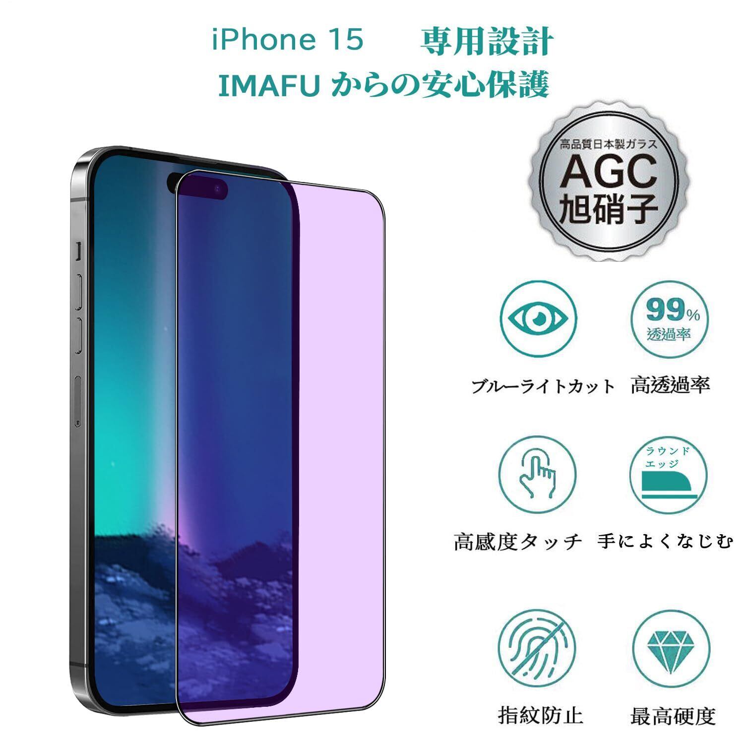 【特価商品】【ブルーライトカット 】 iPhone16用 / iPhone15用 ガラスフィルム 液晶保護 フィルム ブルーライト 強化ガラス 全面保護 【ガイド枠付き/硬度9H/指紋防止/気泡ゼロ/飛散防止/貼り付け簡単/2枚】