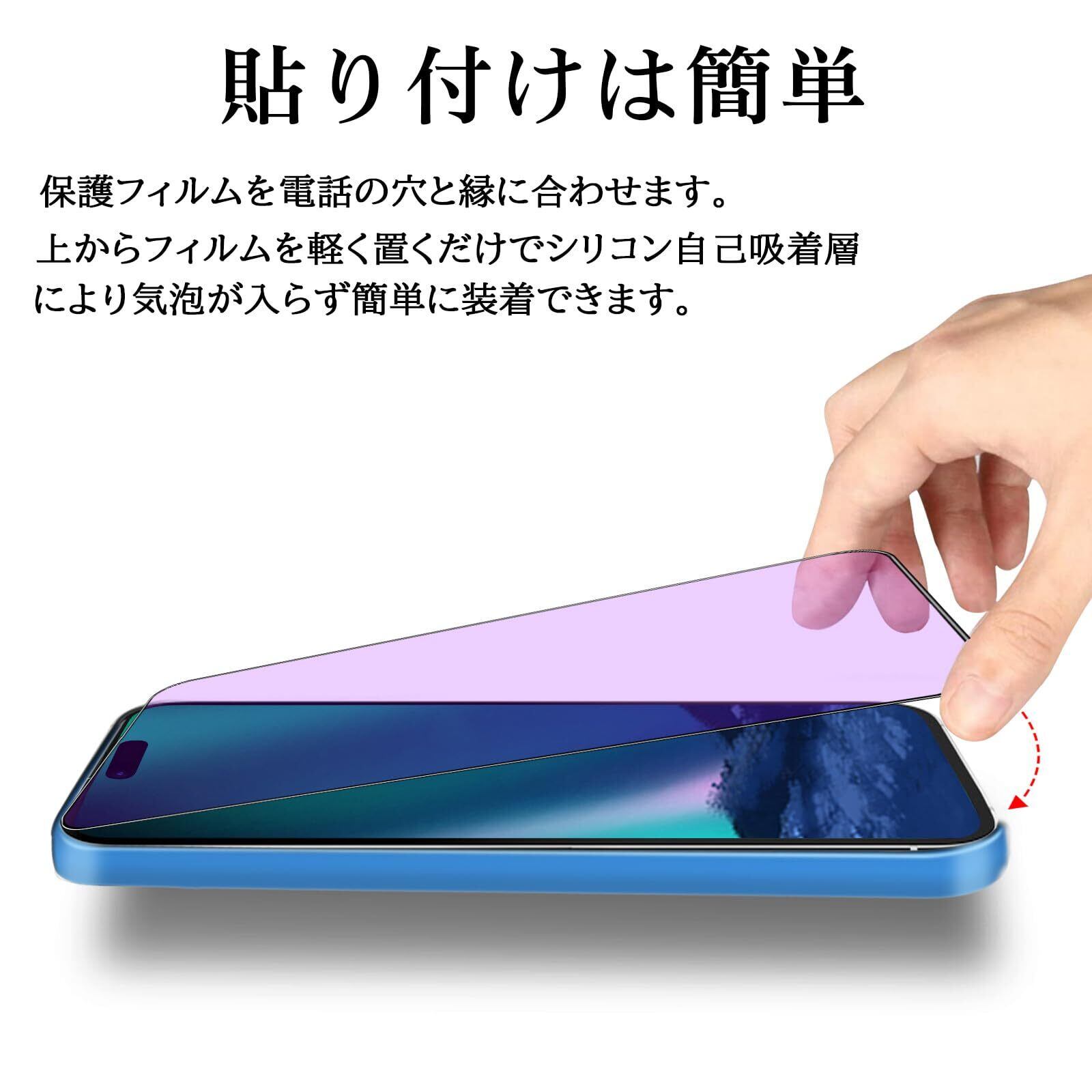 【ブルーライトカット 】 iPhone16用 / iPhone15用 ガラスフィルム 液晶保護 フィルム ブルーライト 強化ガラス 全面保護 【ガイド枠付き/硬度9H/指紋防止/気泡ゼロ/飛散防止/貼り付け簡単/2枚】