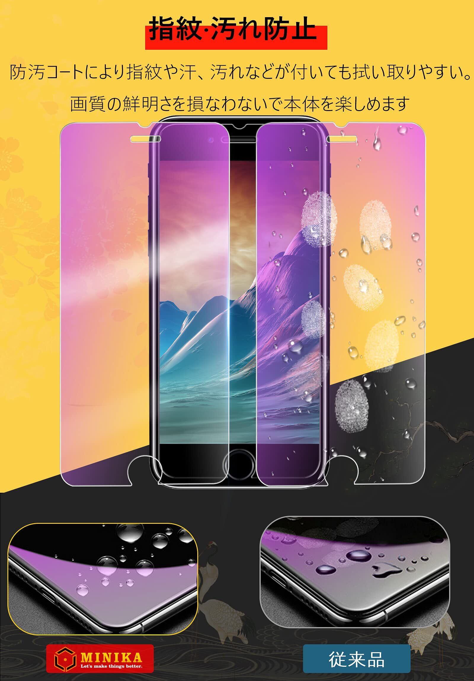 【ブルーライトカット、目に優しい】iphone se2 ガラスフィルム ブルーライトカット率98%、先進ブルーライトカット反射技術によりブルーライトを大幅にカットでき、目に掛かる負担を軽減し。ブルーライトから目を守りディスプレイを、長時間眺める方に効果を発揮します。ブルーライトカットタイプはその特性としてクリアタイプと比較して屋外では紫色の反射、画面のカラーは黄味がかった色となります。