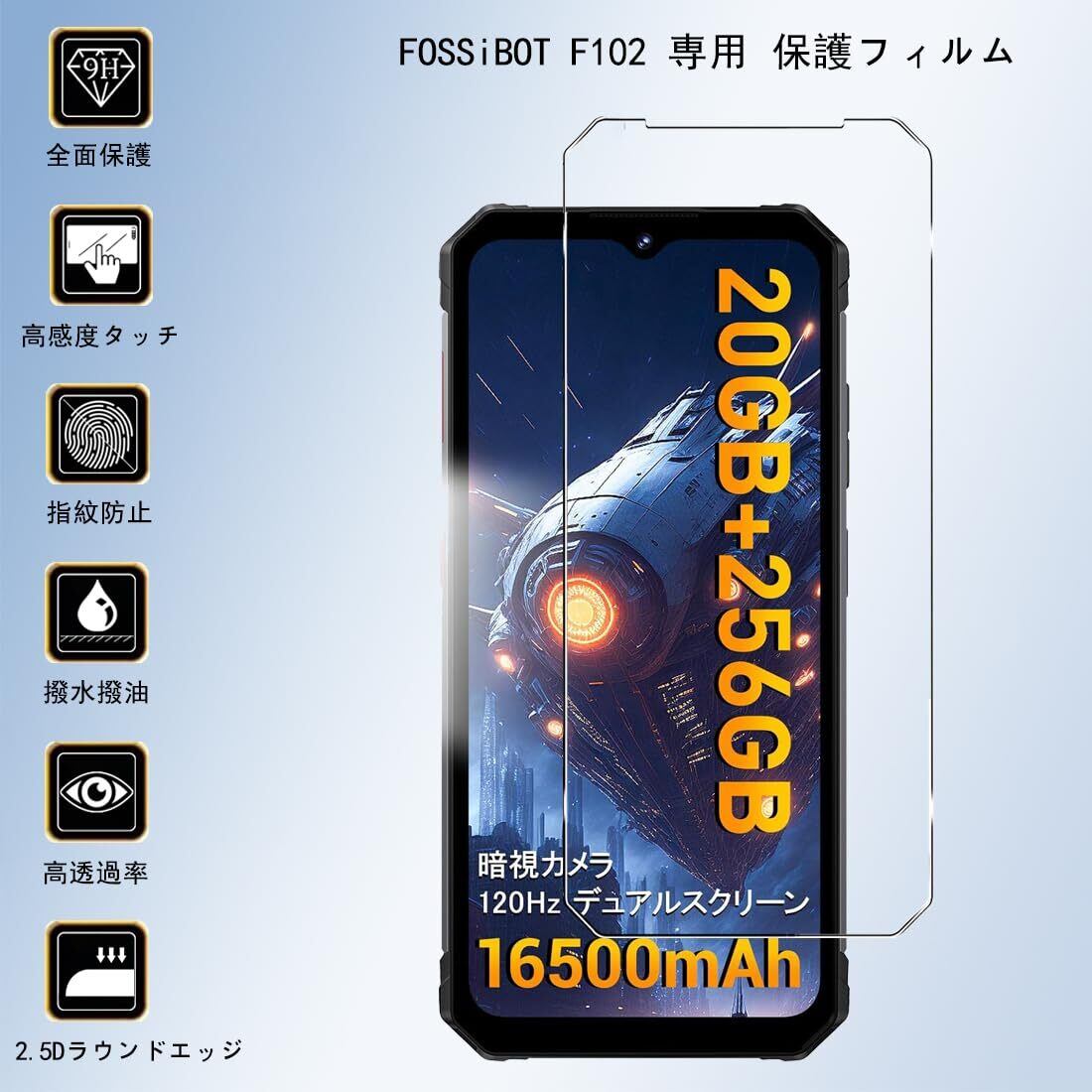 【新着商品】ZENGZOUZ 【2枚セット】For FOSSiBOT F102 フィルム 保護フィルム 硬度9H 耐衝撃 擦り傷防止 スクラッチ防止 HD高透過率 自動吸着 撥水撥油 反射低減 FOSSiBOT F102 対応 強化ガラスフィルム