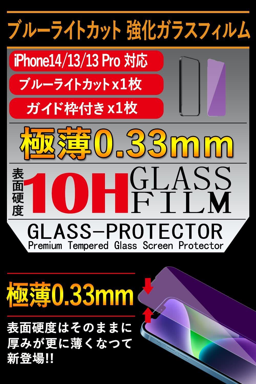【数量限定】Mostean【ブルーライトカット】 iPhone 16e/14/iPhone 13/13 Pro ガラスフィルム 日本旭硝子素材製 iPhone16e/14 強化ガラス 目を守る 硬度10H 耐衝撃 スクラッチ防止 飛散防止 貼り付け簡単 ガイド枠付き 自動吸着 気泡ゼロ 指紋防止 撥水撥油 アイフォン16e/14 /13/13Proプロ 液晶保護フィルム 6.1インチ対応 (1枚)