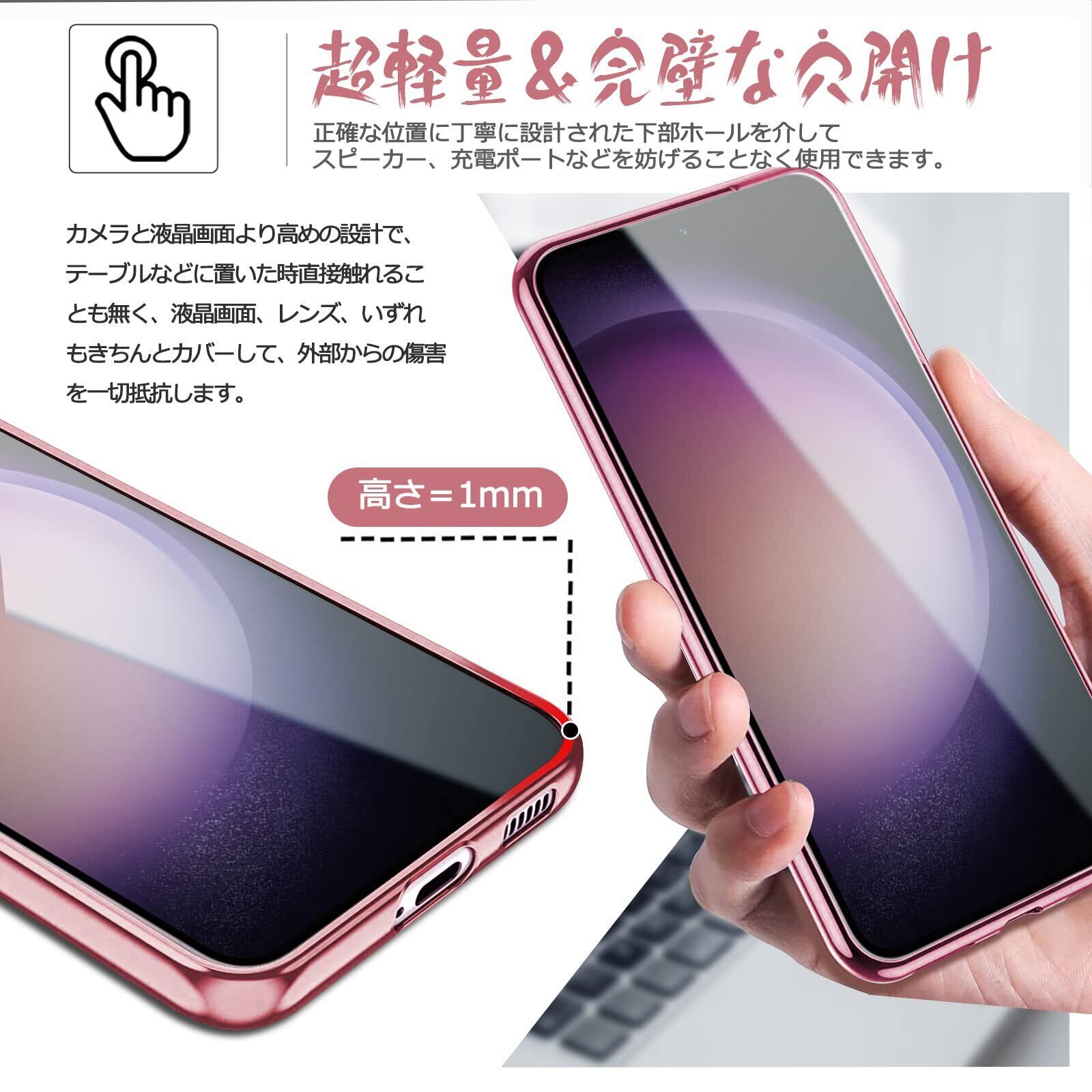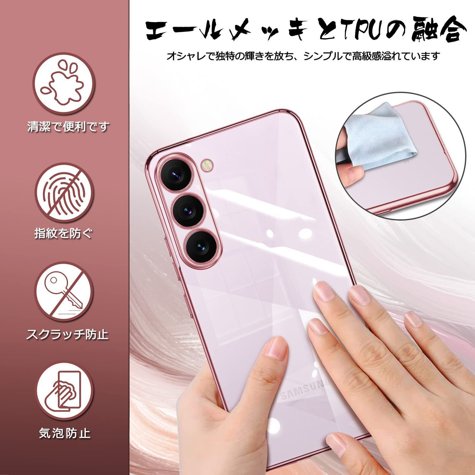 Samsung Galaxy S23 ケース クリア SC-51D SCG19 カバー 透明 TPU シリコン 耐衝撃 メッキ加工 薄型 軽量 ソフトカバー ストラップホール ギャラクシー S23 スマホケース (ローズゴールド)