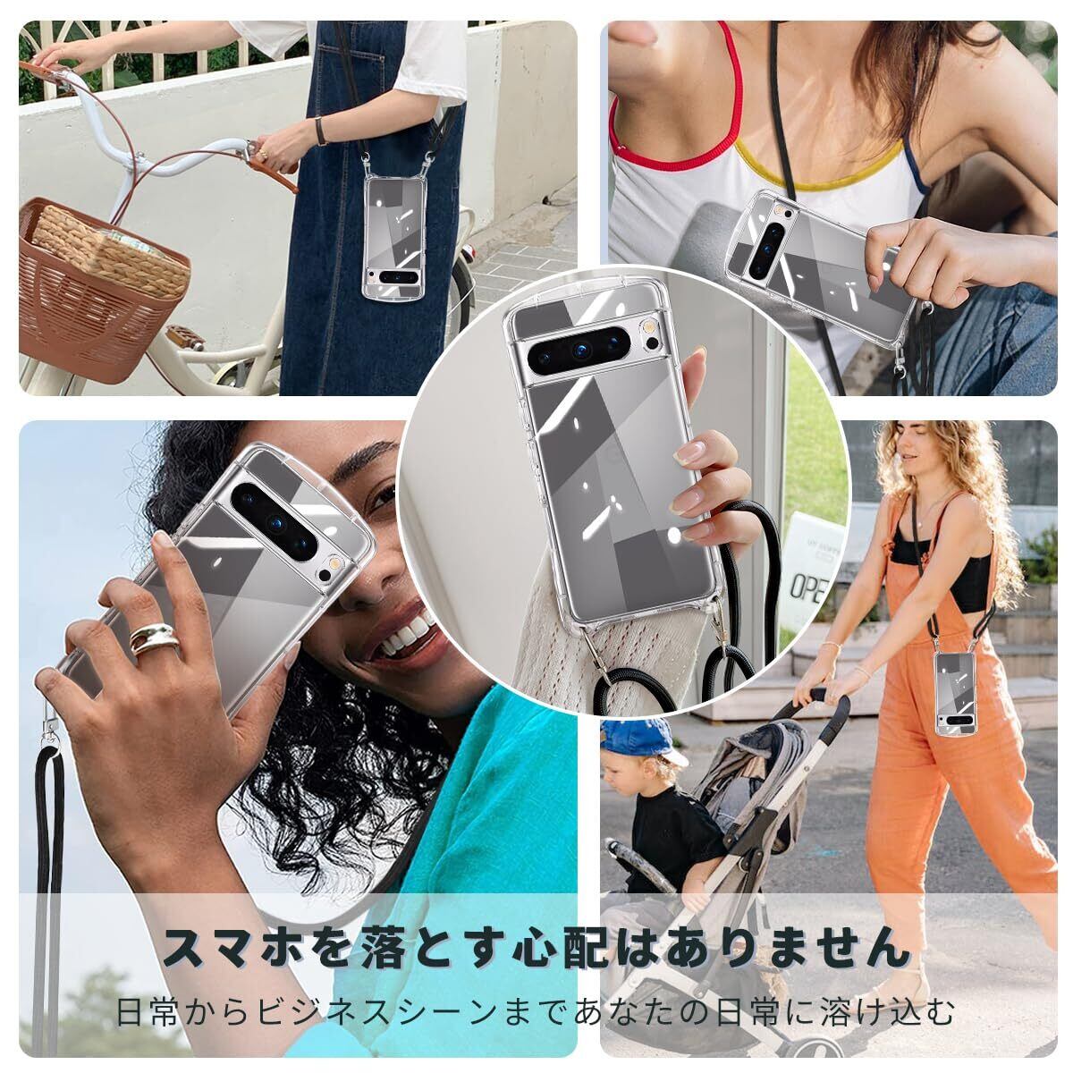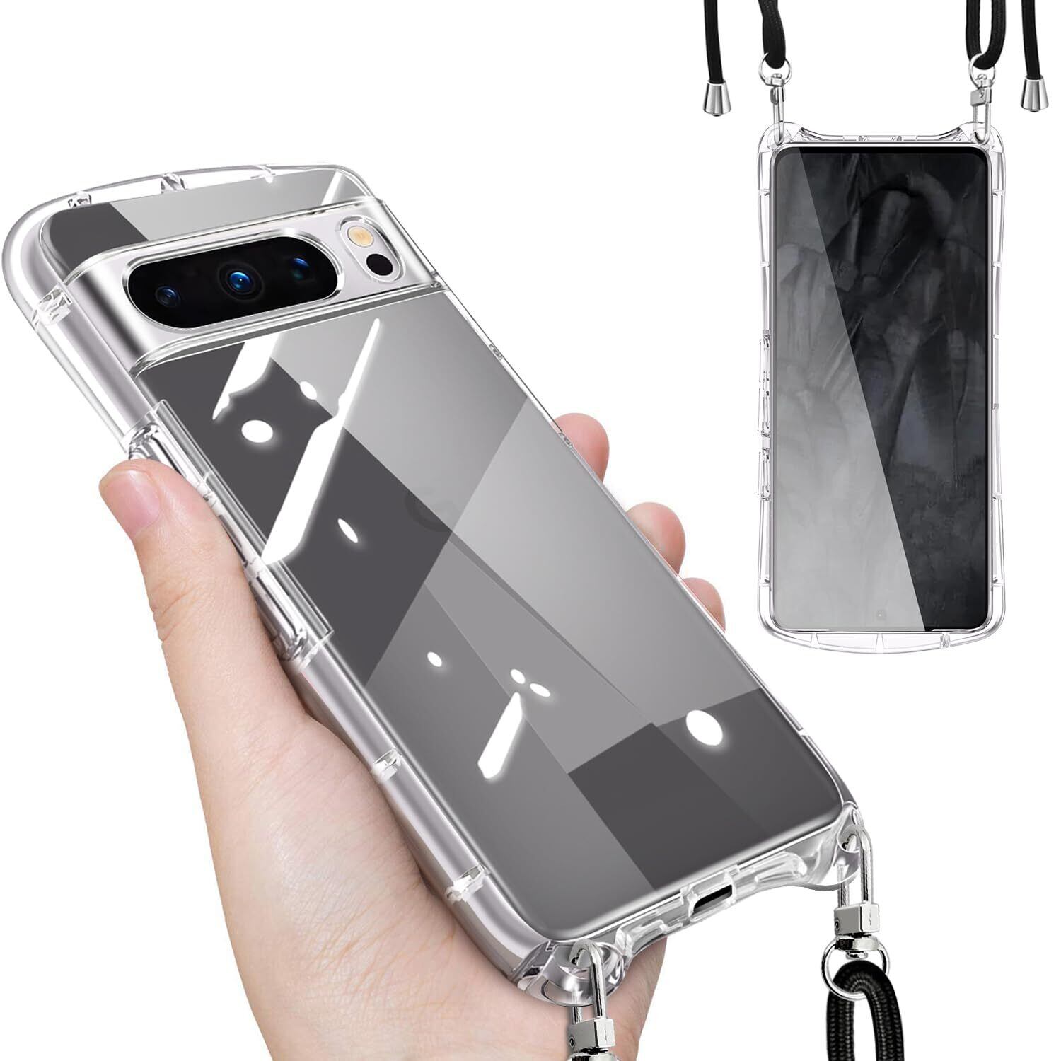 Google Pixel 8 Pro ケース クリア ショルダー ストラップ付き グーグル ピクセル8 プロ カバー 透明 肩掛け 斜めかけ TPU 耐衝撃 全面保護 薄型 韓国 可愛い 縄掛け 取り外し可能 長さ調整可能 スマホケース