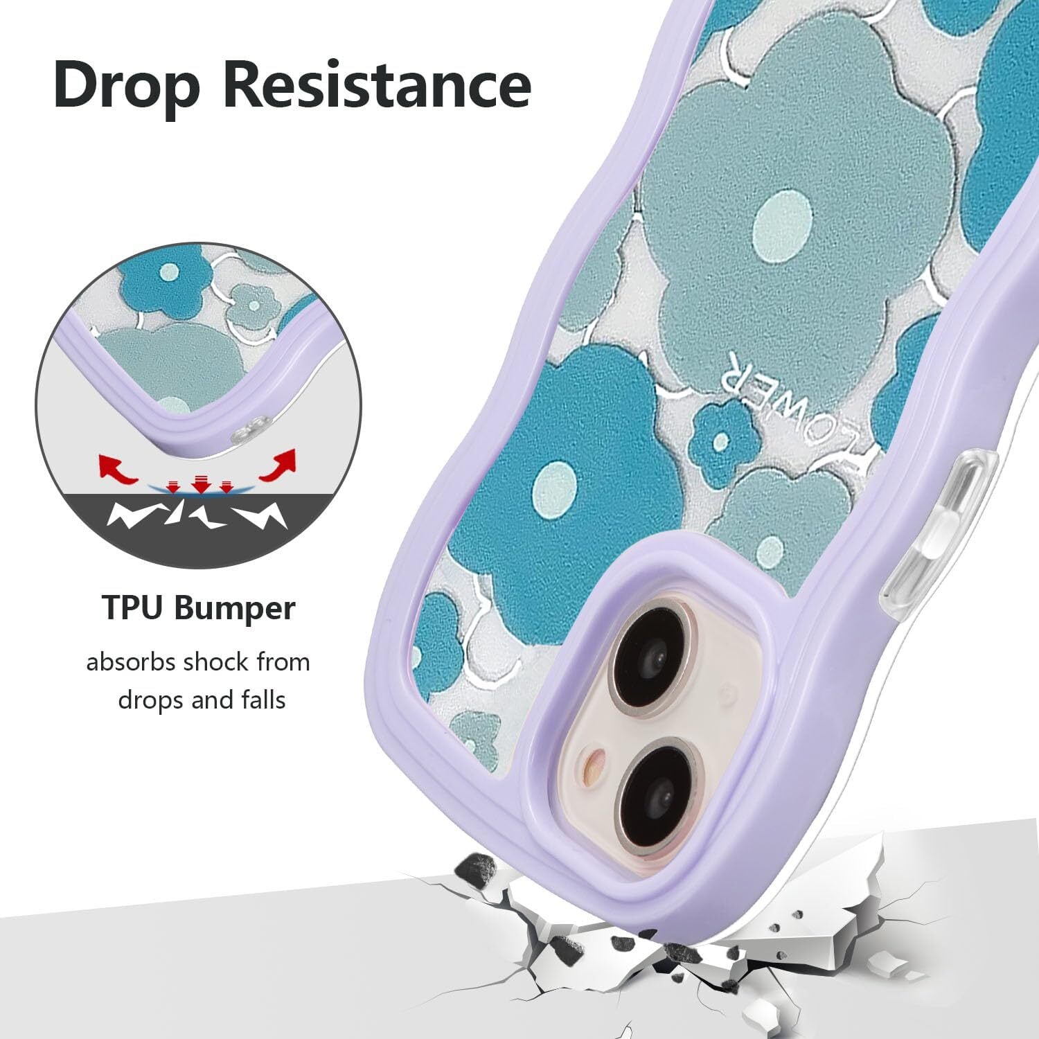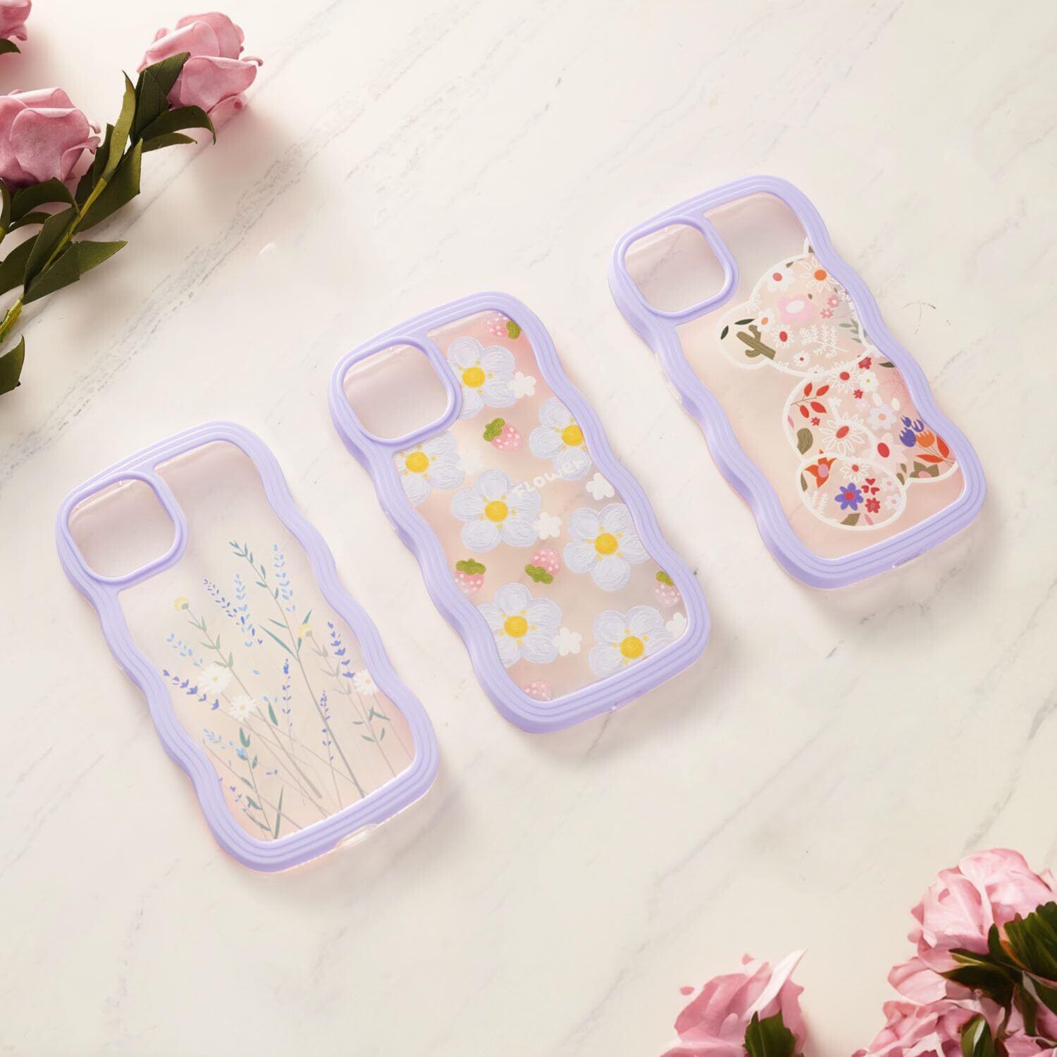 QLTYPRI iPhone 14ケース iPhone 13ケース クリア TPUカバー おしゃれ 韓国 可愛い 透明 薄型 軽量 耐衝撃 スマホケース ワイヤレス充電対応 ストラップホール付き アイフォン 14/13 ケース 6.1インチ 対応 - パープルフレーム & ブルー 花柄