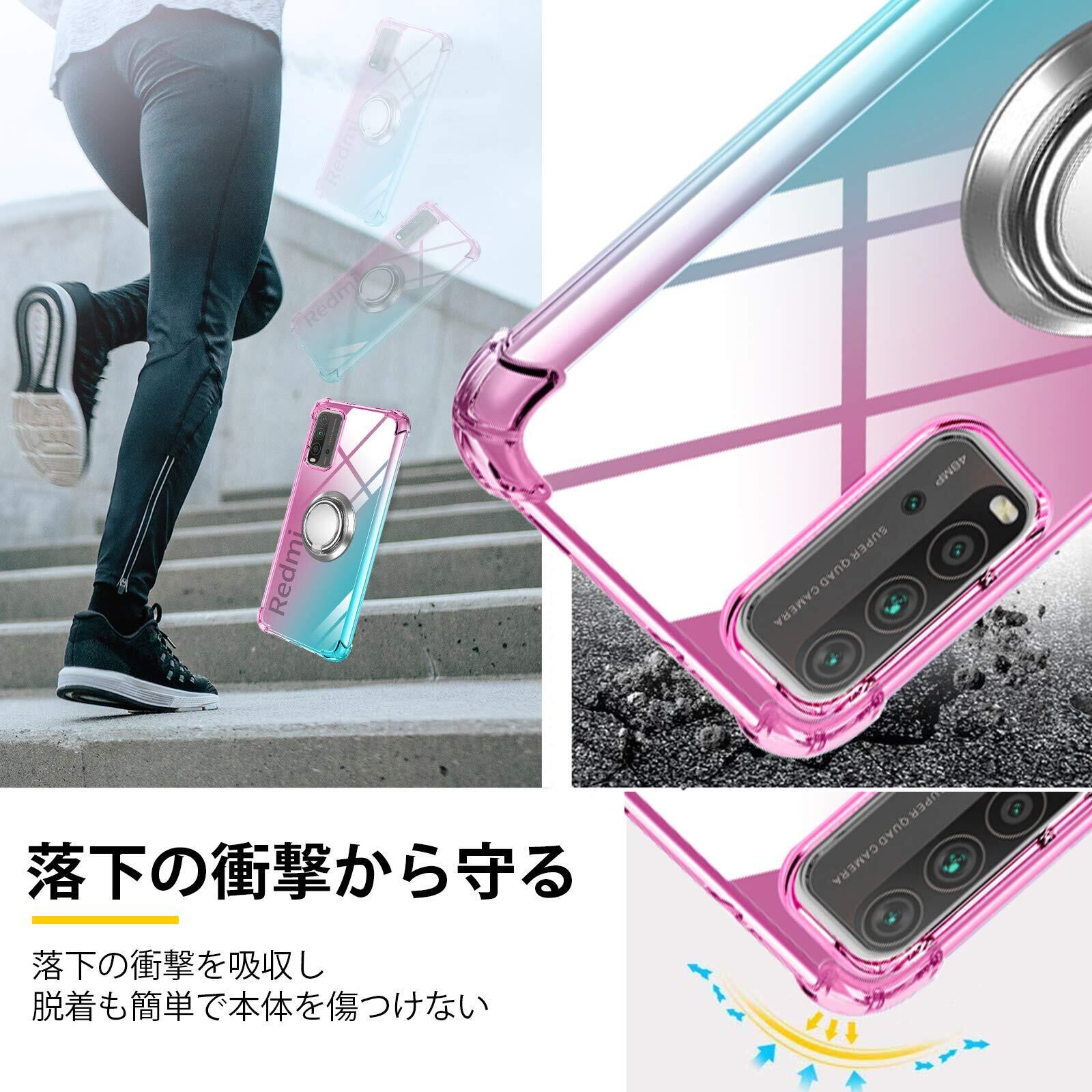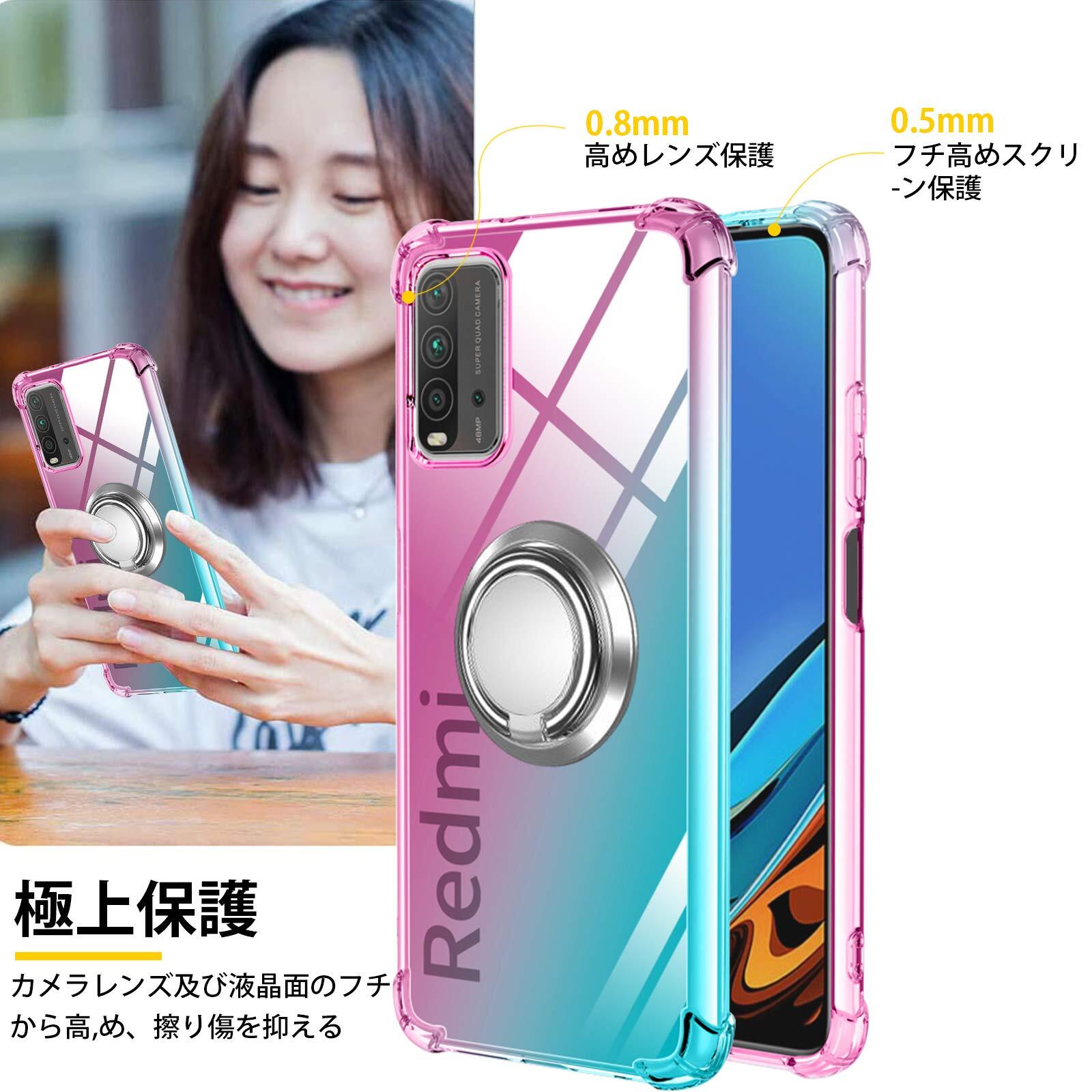 Xiaomi Redmi 9T ケース リング クリア TPU シリコン リング付き 薄型 グラデーション色 ケース 軽量シリコン 耐衝撃 指紋防止 360回転 車載ホルダー対応 一体型 人気 携帯カバー スマホケース Redmi 9T 専用(ピンクグリーン)