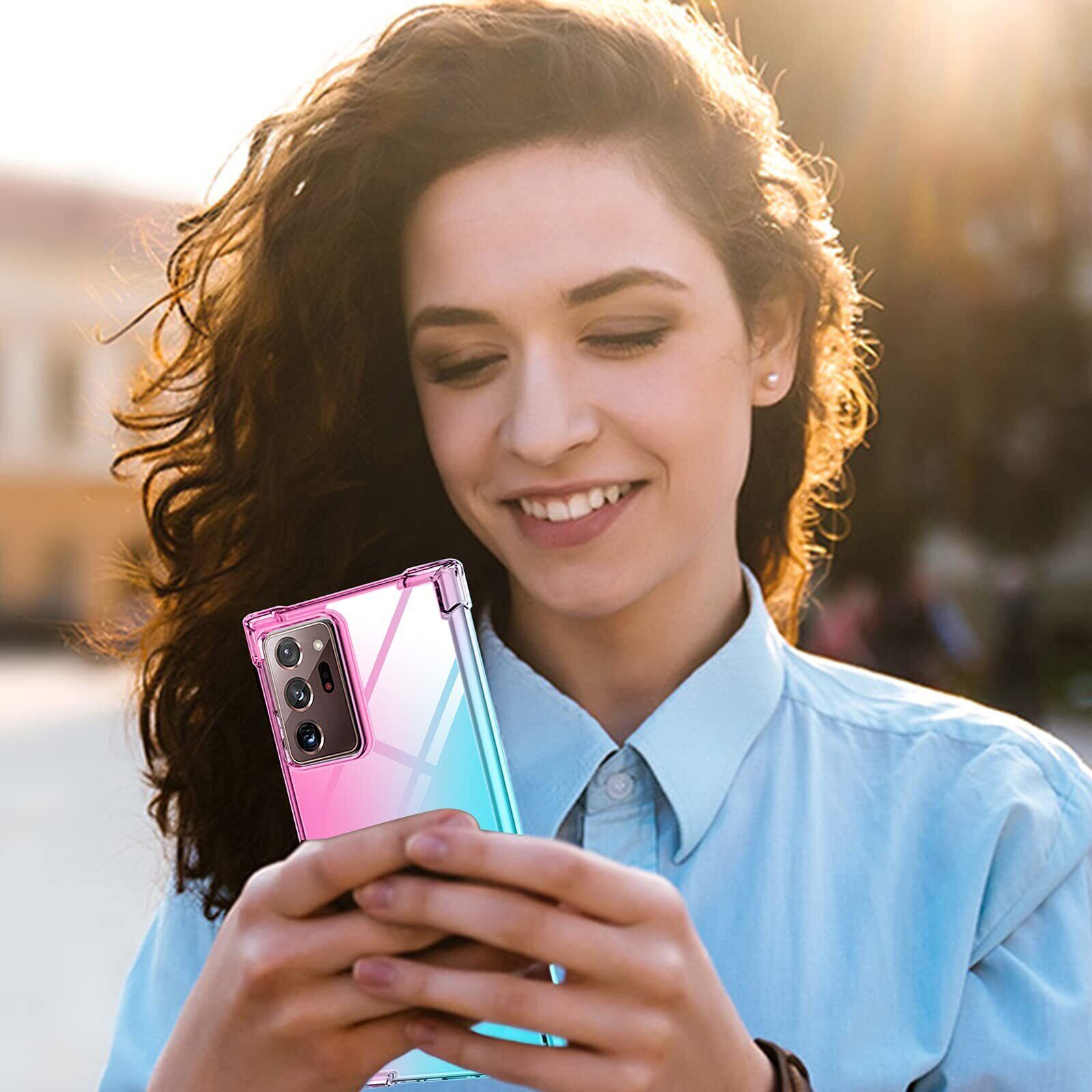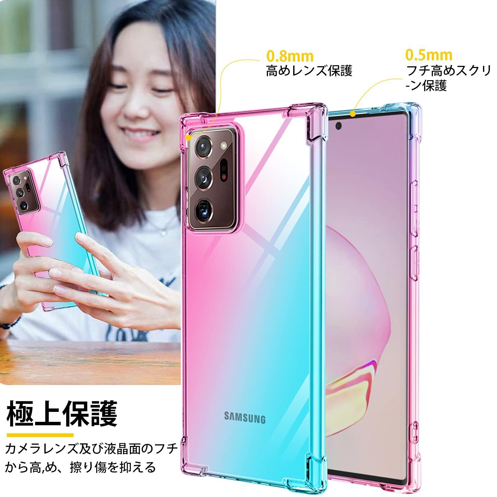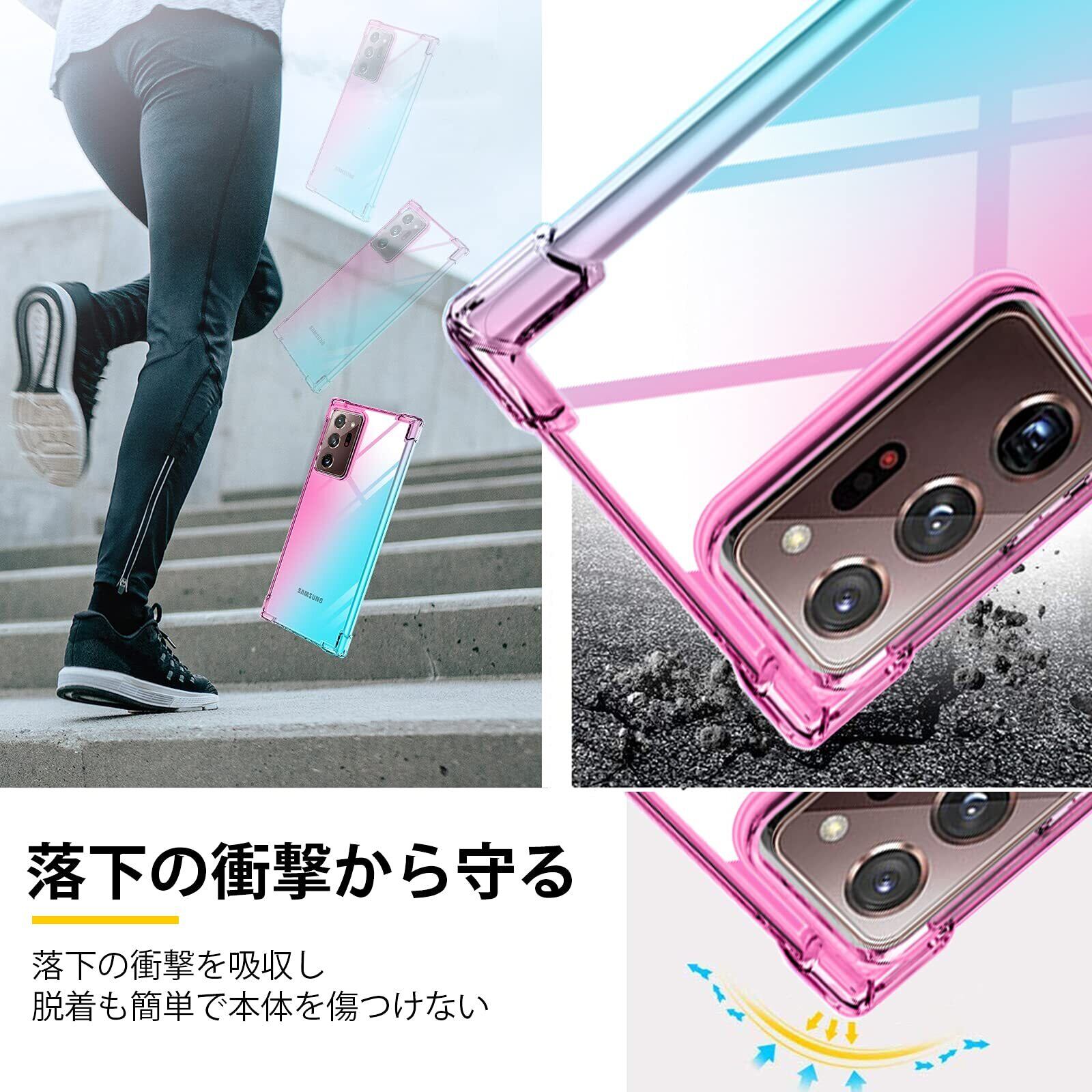 Galaxy Note 20 Ultra ケースクリア 透明 tpu 薄型 軽量シリコン グラデーション スリム ギャラクシーNote20Ultra カバー 耐衝撃 指紋防止 防塵 一体型 人気 携帯カバー (ピンクグリーン)