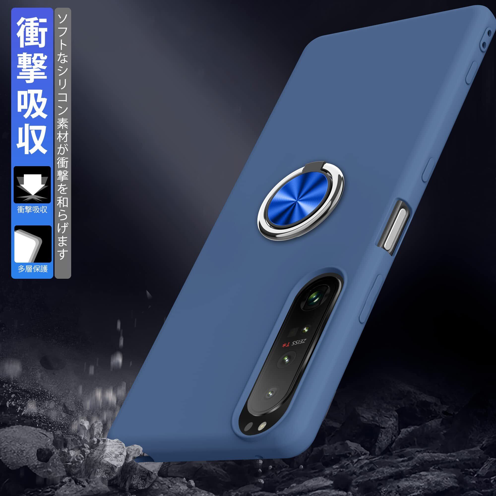 OPPO Reno7 A ケース リング 耐衝撃 シリコン OPG04 カバー TPU 薄型 リング付き かわいい ストラップホール付き 指紋防止 レンズ保護 磨り表面 指紋防止 擦り傷防止 指紋防止 滑り止め 軽量 黄変防止 脱着簡単 青C91-reno7a-02