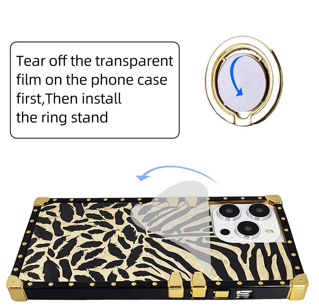 ファッションスタイル - ゼブラ柄とフェザー柄のケース、金色の反射パネル、光の下でキラキラと輝く。