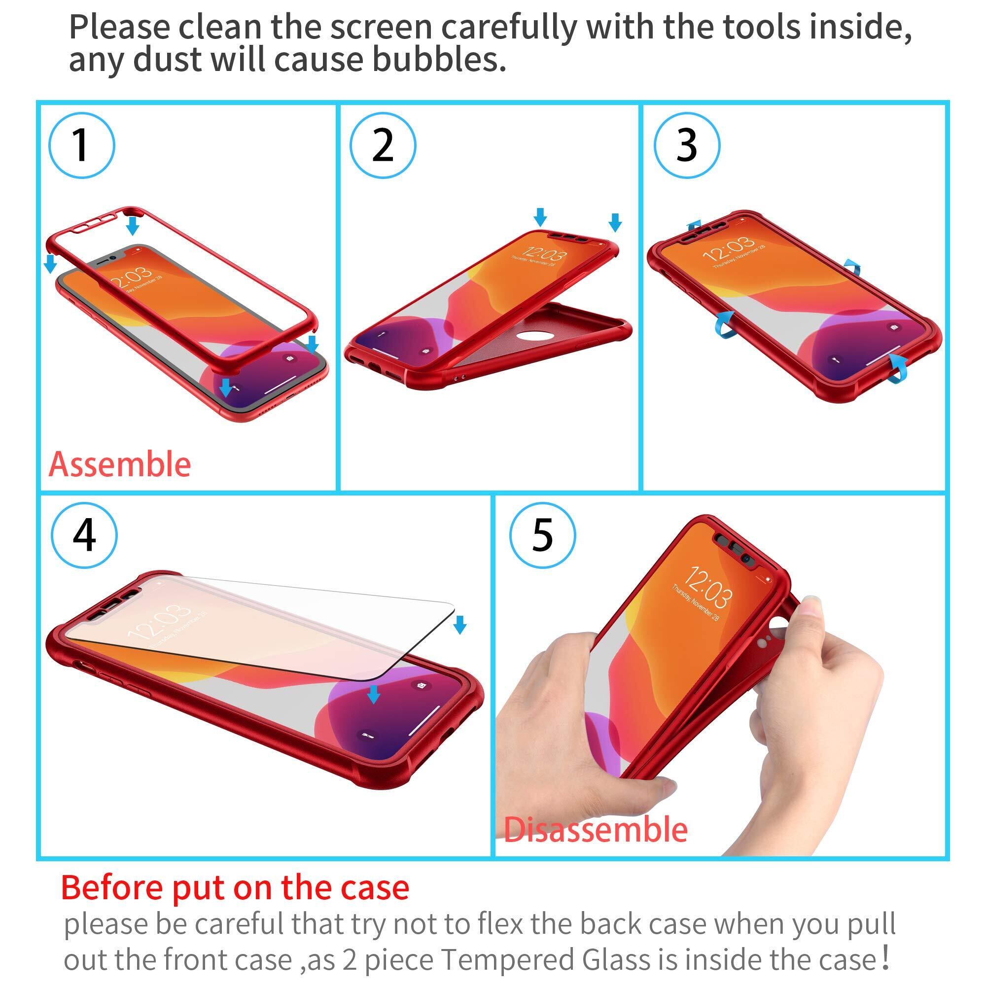 ORETECH iPhone Xケースと互換性があります [2 x強化ガラススクリーンプロテクター]付きiPhone XSケース 360°全身耐衝撃ケース超薄型ハードPCシリコンケースカバーiPhone X/XS 5.8 ''(レッド)
