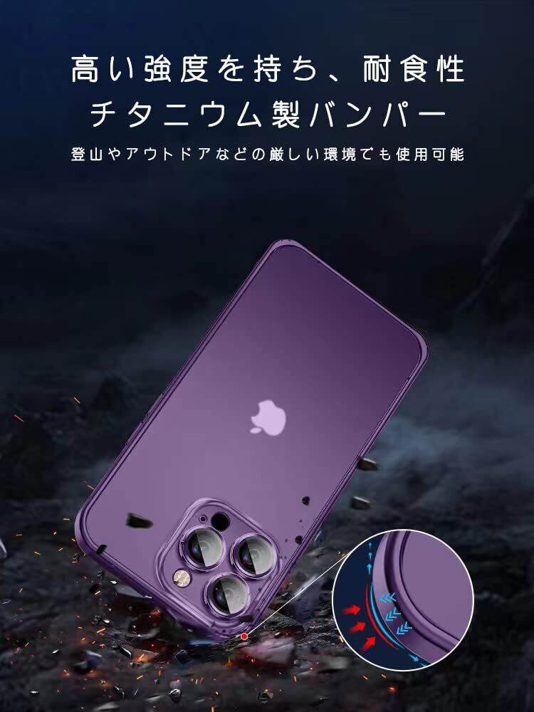 【チタニウム製】iPhone 保護ケースは2023年最新デザイン、側面は軽量、高い強度、耐食性等の特徴を持つチタニウムで作られました。両面は強化ガラスで作られました。