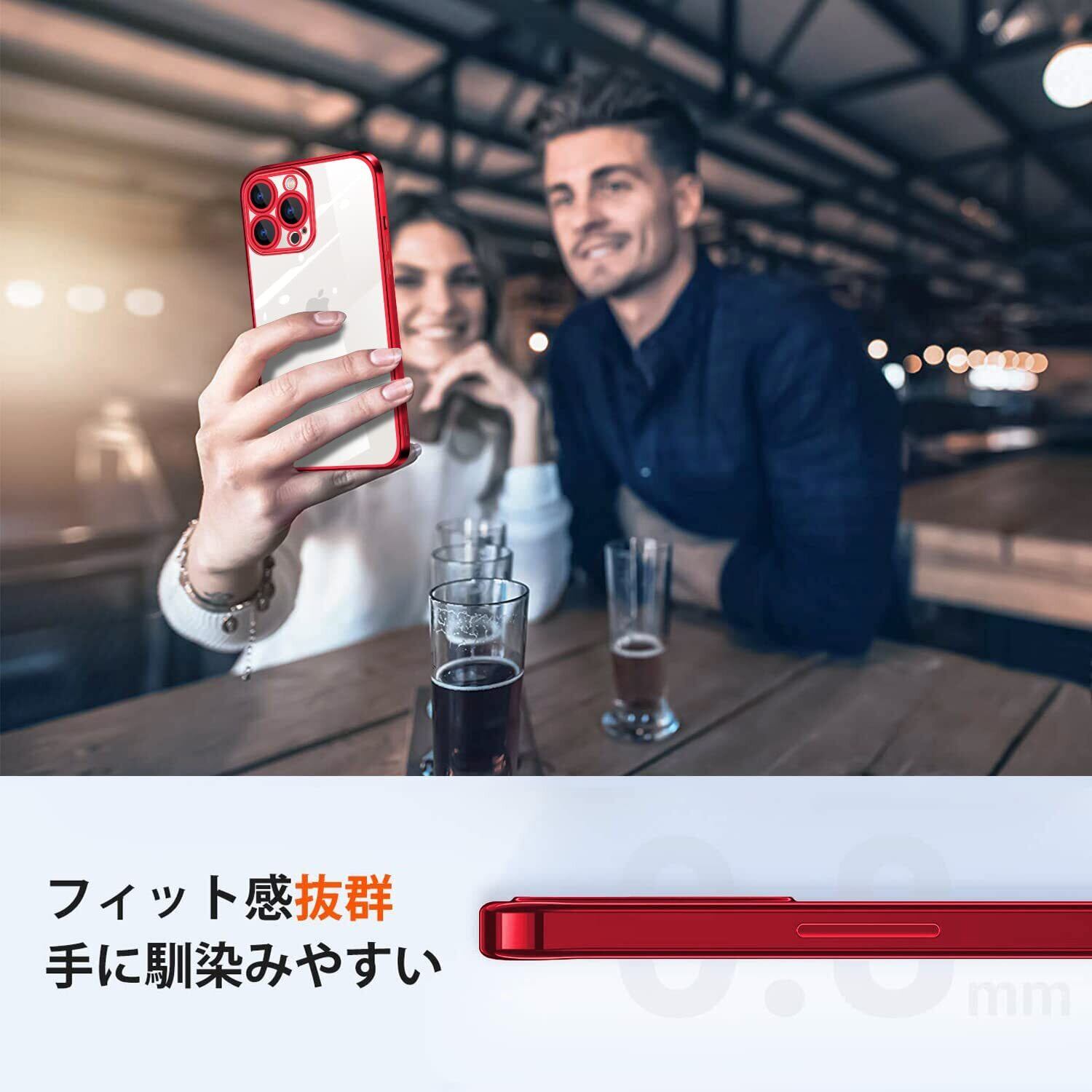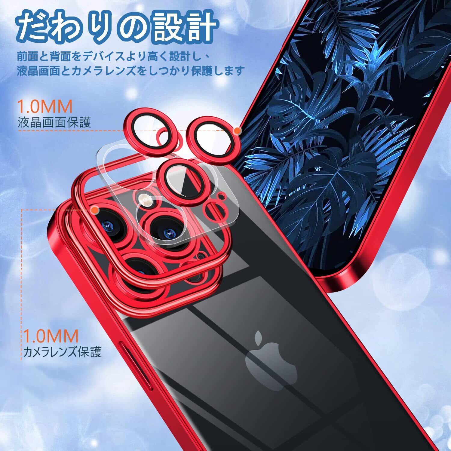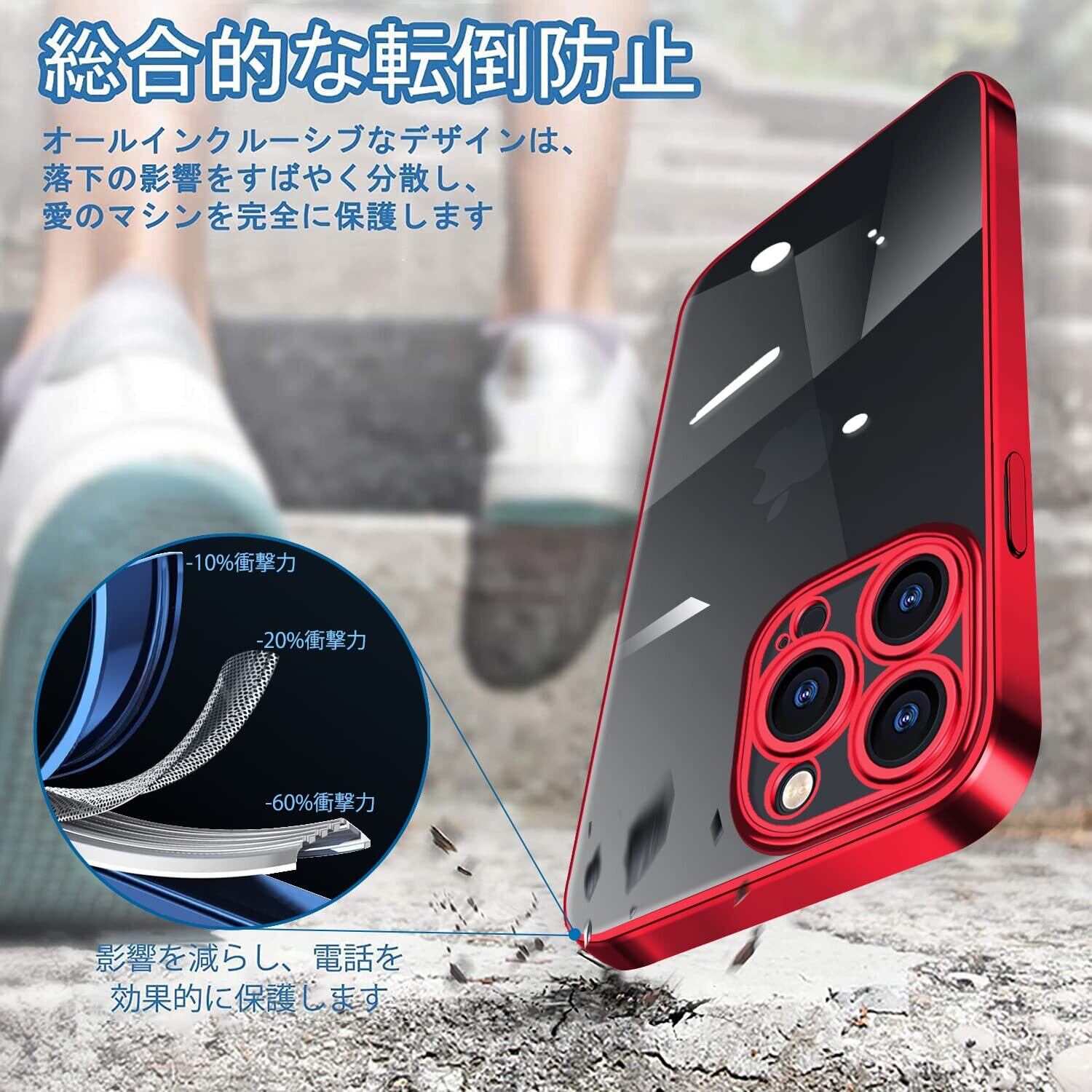 iPhone 14 Pro Max 用 ケース クリア 耐衝撃 TPU 透明 レンズ保護 ソフトケース 軽量 「2.0 改良モデル」 2022新型 ストラップホール付き 衝撃吸収 ワイヤレス充電 アイフォン 14Pro Max 用 カバー 6.7インチ レッド