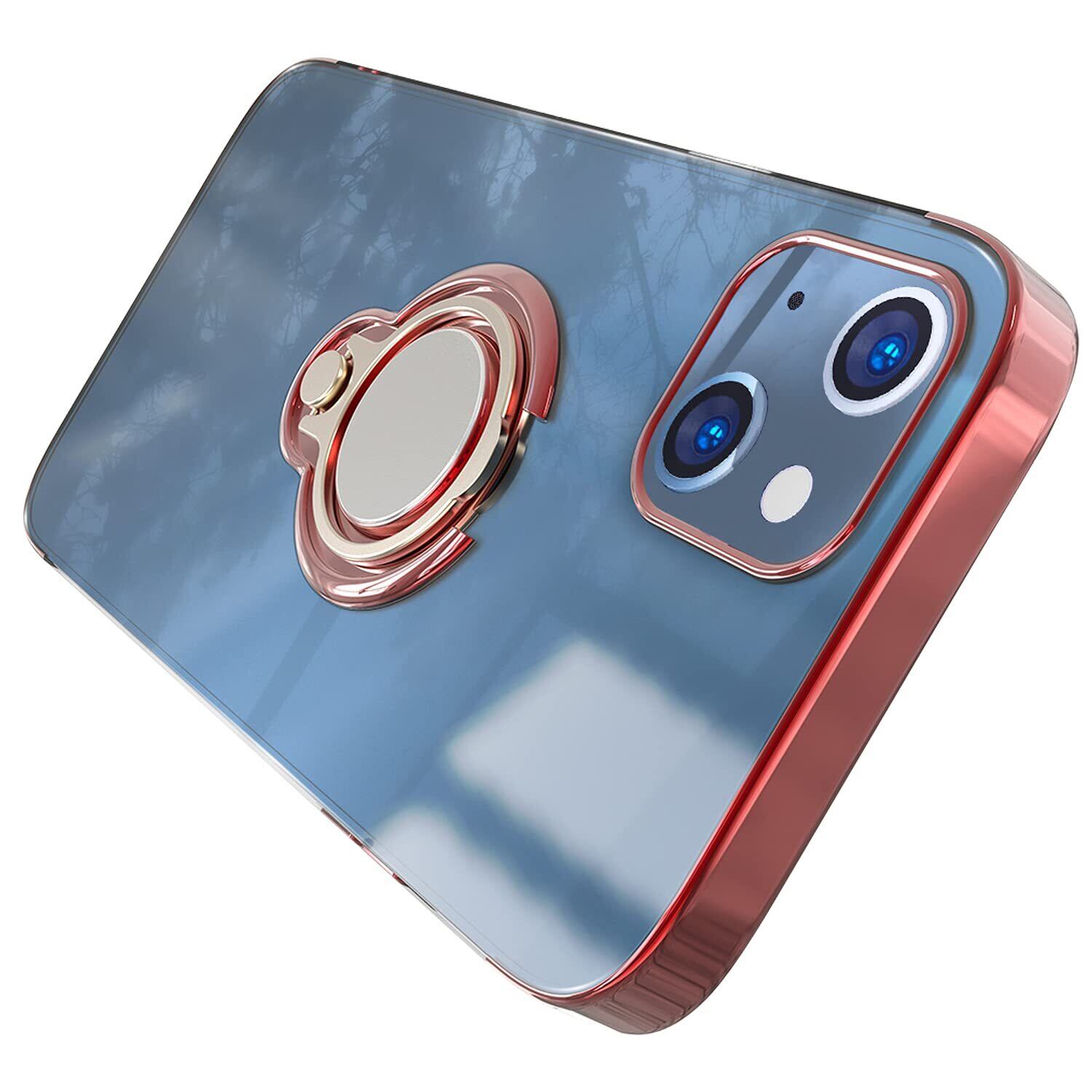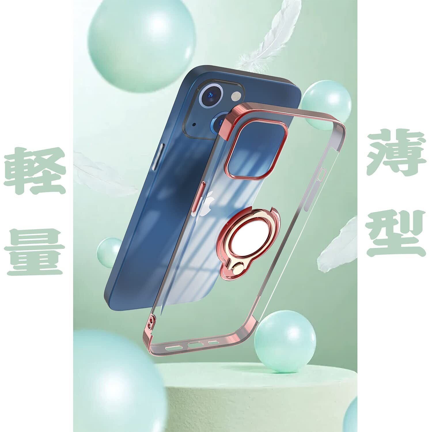 iPhone 13 mini 用ケースリング付き 透明 TPU マグネット式 車載ホルダー対応 全面保護 耐衝撃 軽量 薄型 携帯カバー スクラッチ防止 滑り防止 アイフォン13 mini ケース 一体型(iPhone 13 mini ケース, レッド)