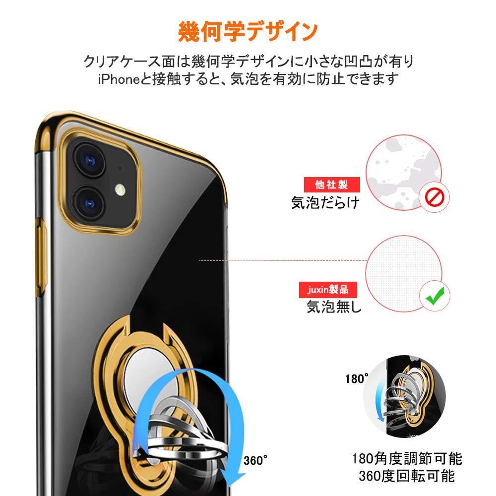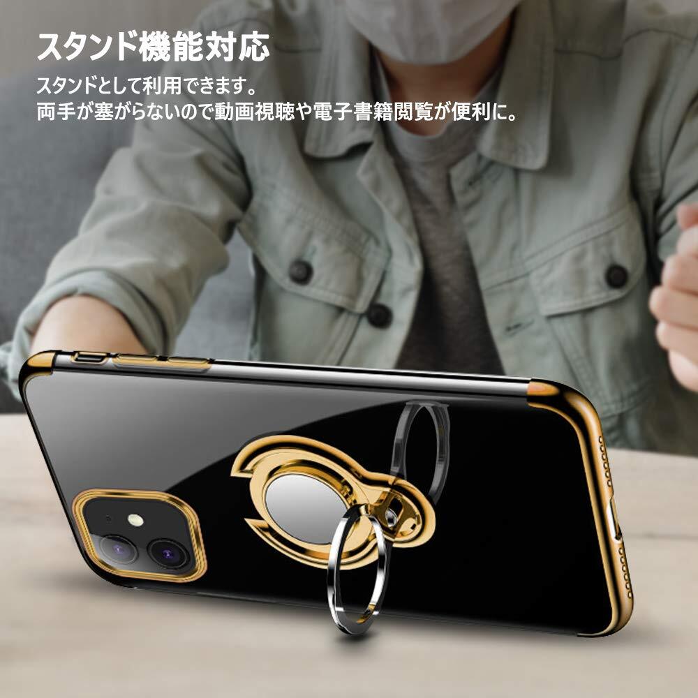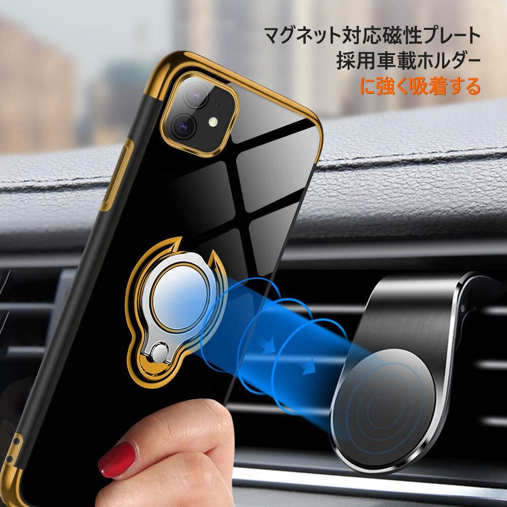 【在庫処分】iPhone 11 ケースリング付き 透明 TPU マグネット式 車載ホルダー対応 全面保護 耐衝撃 軽量 薄型 携帯カバー スクラッチ防止 滑り防止 アイフォン11 ケース 6.1インチ専用 一体型(iPhone 11 ケース ゴールド)