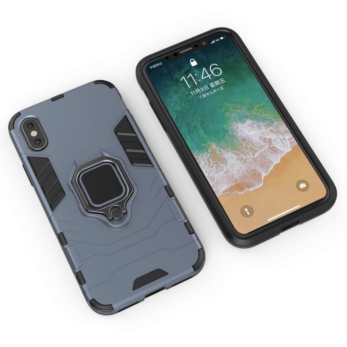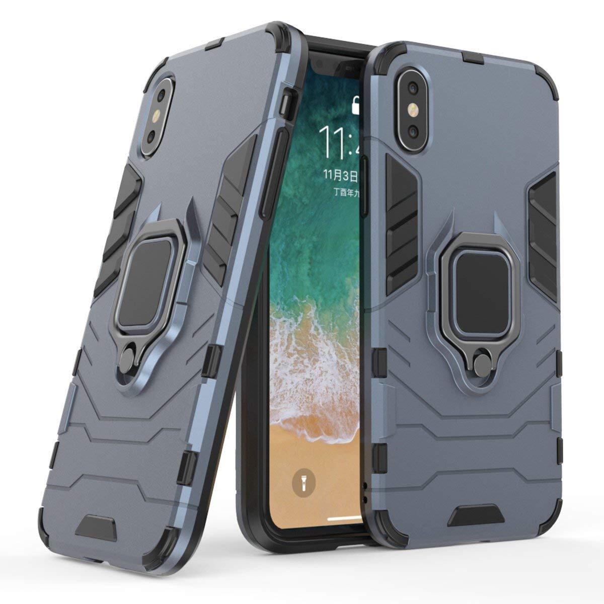 LuluMain 適応 アップル Apple iPhone X, iPhone XS 多機能ケース リングキックスタンドカバー エクストリーム保護 衝撃吸収性カバー (ネイビーブルー)