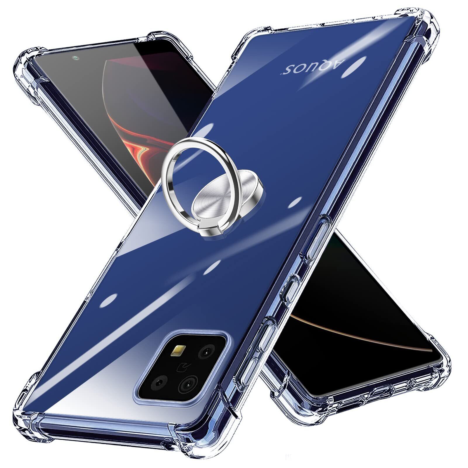 AQUOS Sense6 ケース リング付き クリア TPU 対応 SH-54B/SHG05 カバー 透明 薄型 リング 回転リング 車載ホルダー対応 ケース 黄変防止 耐衝撃 滑り止め 指紋防止 カメラ保護 TPU カバー 透明 N408-sense6-01