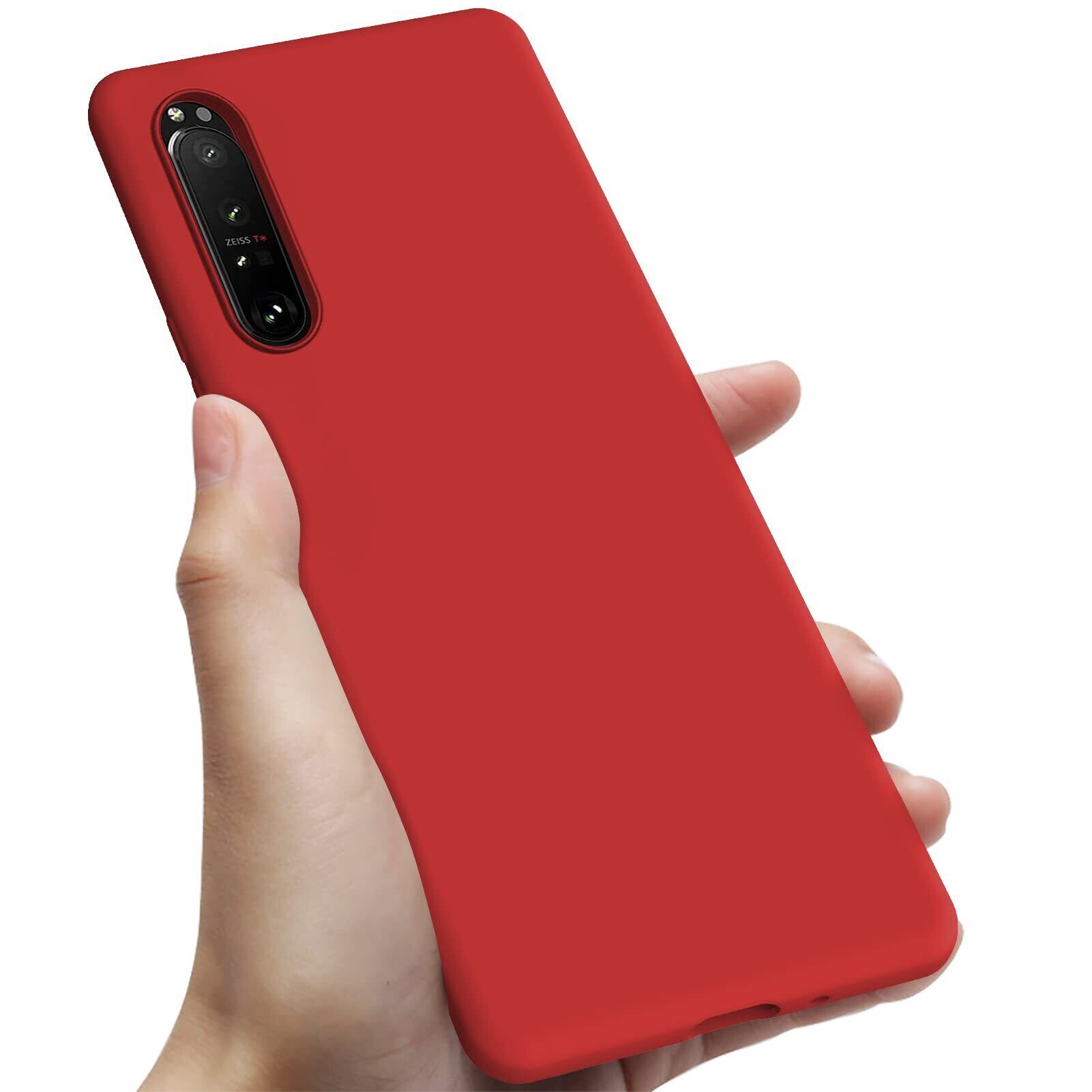 Xperia 1 IV ケース シリコン 耐衝撃 薄型 スリム SO-51C SOG06 カバー TPU カメラ保護 ワイヤレス充電 ケース ストラップホール 指紋 防止 スマホケース 赤 0108-XP1IV-03