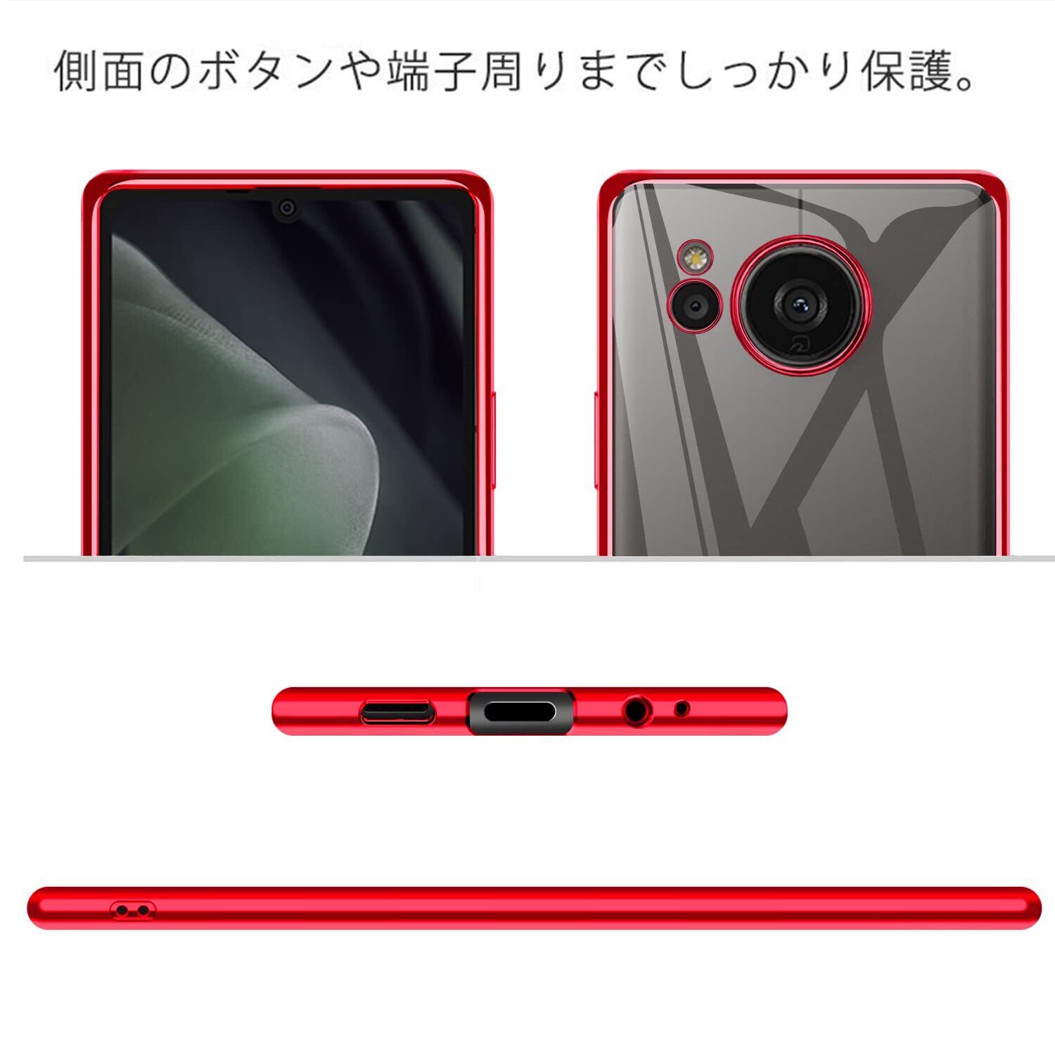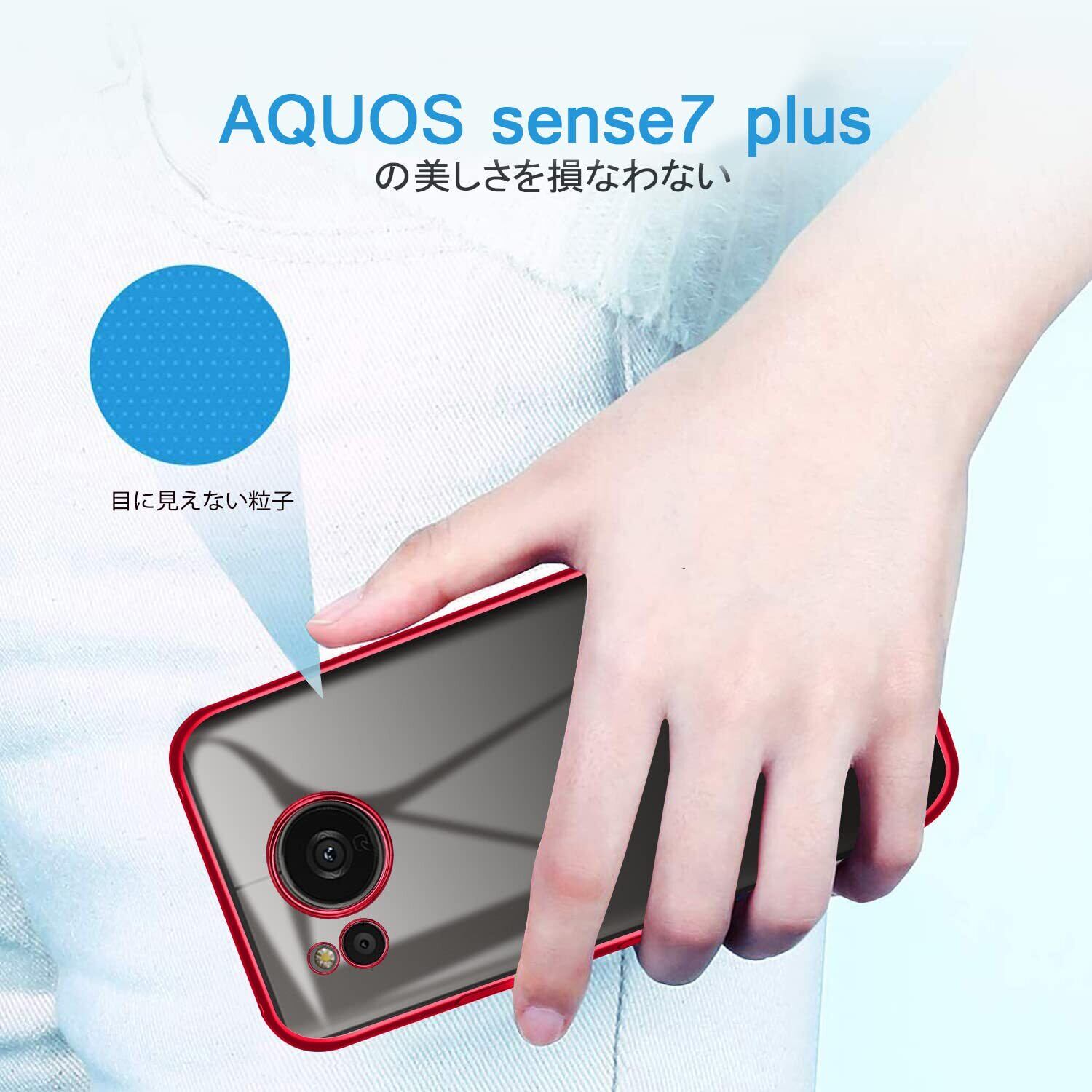 【数量限定】AQUOS sense7 Plus ケース クリア 透明 sense7plus カバー スマホケース 薄型 tpu 耐衝撃 ストラップホール スリム ソフト 赤 メッキ加工 アクオス センス7 Plus ケース レッド