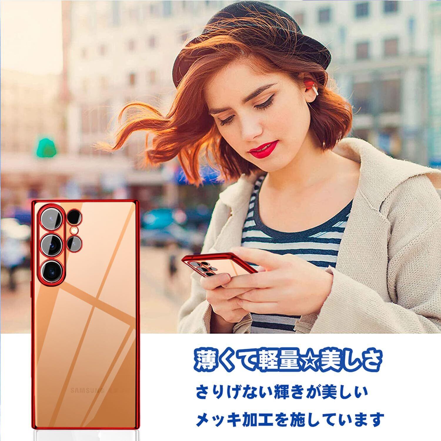 Galaxy S24 Ultra ケース クリア ギャラクシー S24Ultra SC-52E SCG26 カバー 薄型 軽量 透明 ソフト 耐衝撃 メッキ加工 スリム TPU 傷つけ防止 人気 全面保護 スマホケース レッド