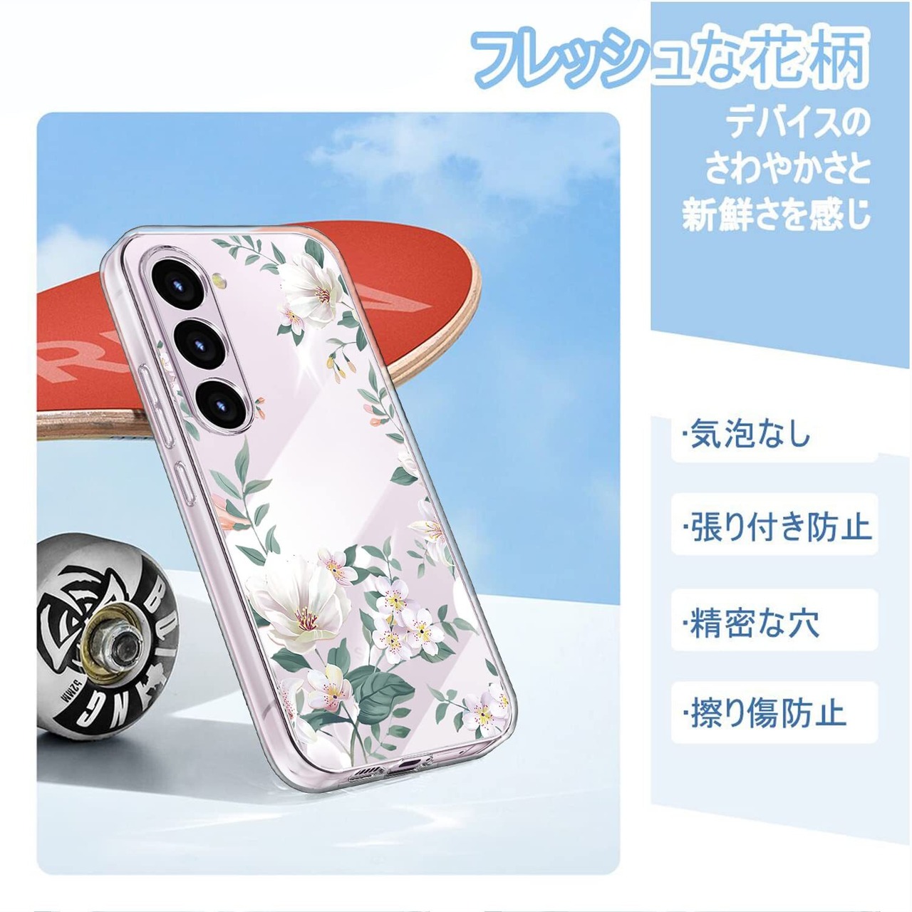 Galaxy S23 ケース SC-51D SCG19 クリア 花柄 GalaxyS23 スマホケース 透明 ソフト tpu ギャラクシーS23 カバー 可愛い 薄型 花 ストラップホール付き 軽量 ほおのき ホワイト 白い