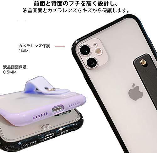 iPhone ケース 伸縮 バンド 落下防止 キックスタンド機能 ルグリップ ベルト ストラップ 安全 カメラ 保護 透明 とリスト バンド 電話 ケース リスト バンド ホルダー付き ハンドストラップ For iphone X 8 8p 7 7p xs xsmax 11 11pro 11promax se 2020 (For iphone xsmax, 黒)
