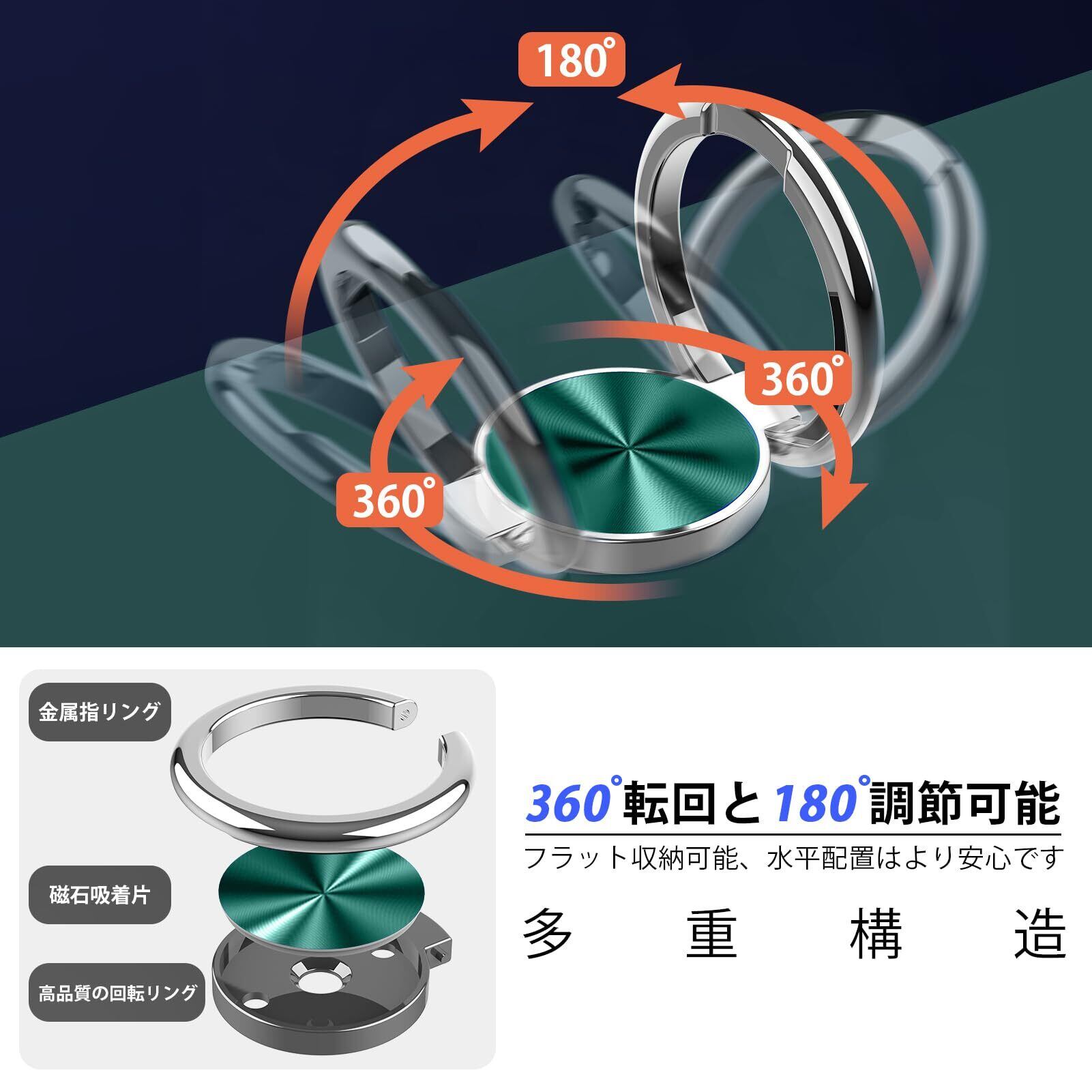 【リング付き・スタンド機能】後ろで嵌め込み式リング付き、伝統的なリングと比較して、アイフォーンの水平安定性を維持することができます。ケースを横向きにするとスタンド機能になり、360度回転と120度調節可能です。マグネット対応金属板採用し、車載ホルダーに強く吸着することもできます。