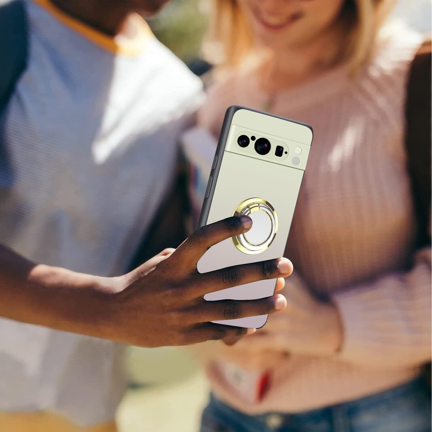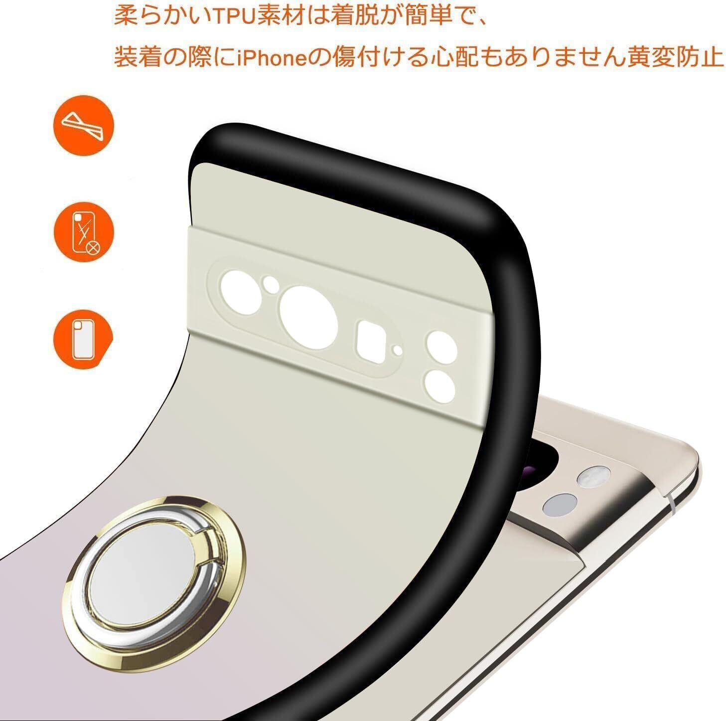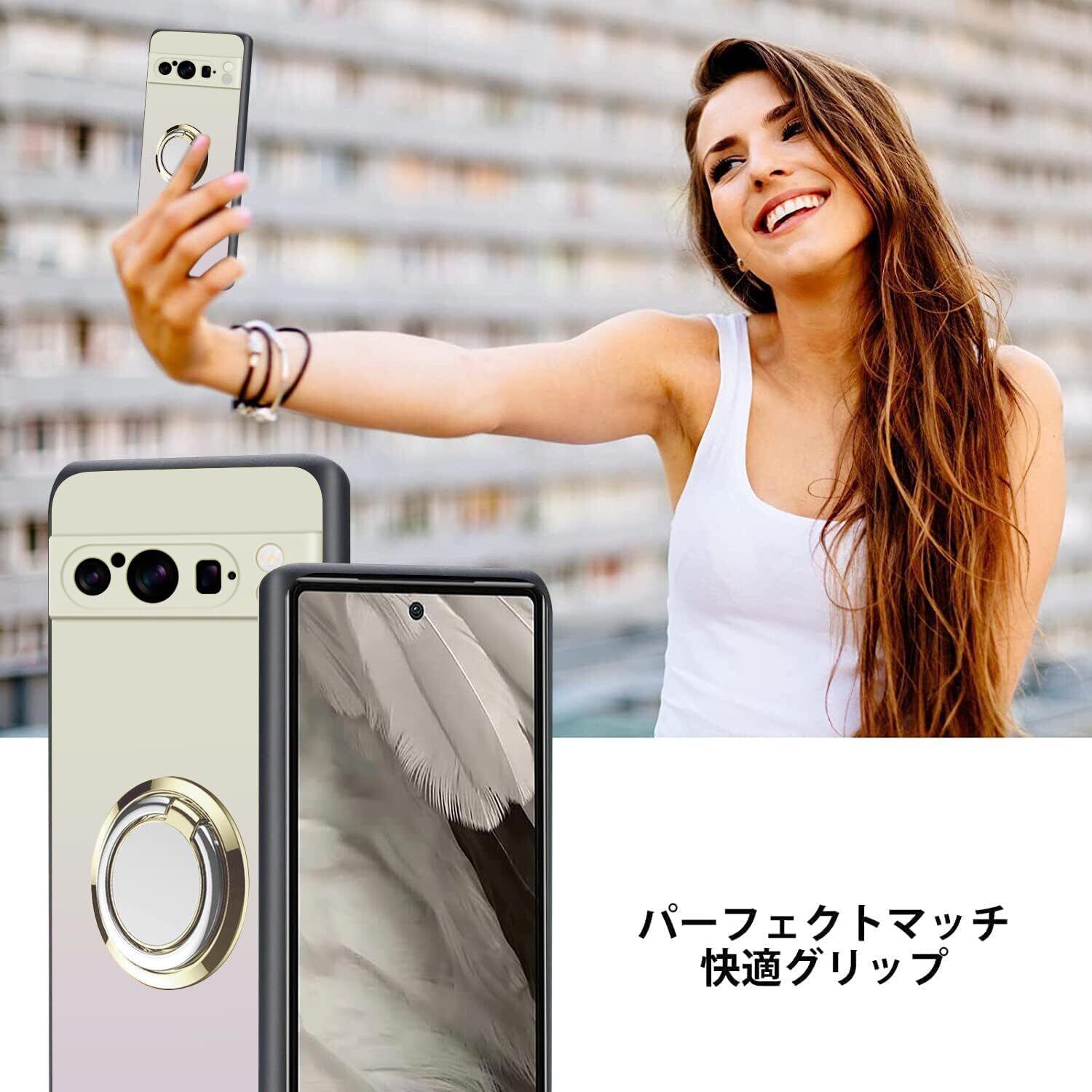 Google Pixel 8 Pro 用 ケース リング付き グラデーション色 TPU シリコン 耐衝撃 グーグル ピクセル 8 プロ カバー ストラップホール付き 360°回転 スタンド機能 指紋防止 一体型 全面保護 カメラ保護(イエロー)