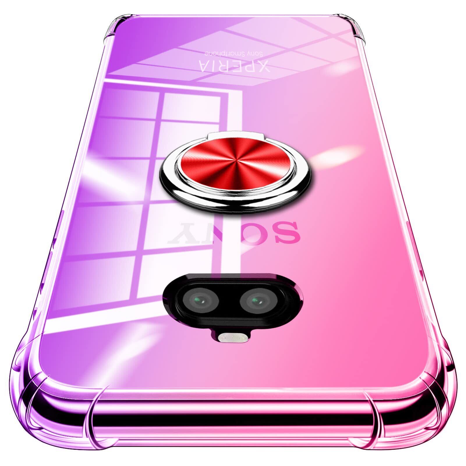Xperia 8 ケース リング付き TPU 耐衝撃 透明 軽量 薄型 衝撃吸収 傷防止 カメラ保護 車載ホルダー対応 指紋防止 スタンド機能 おしゃれ 耐久 スマホケース おしゃれ 人気 携帯カバー Xperia 8 ケース【ピンク/紫】RP95-JB-Xp8-FZ