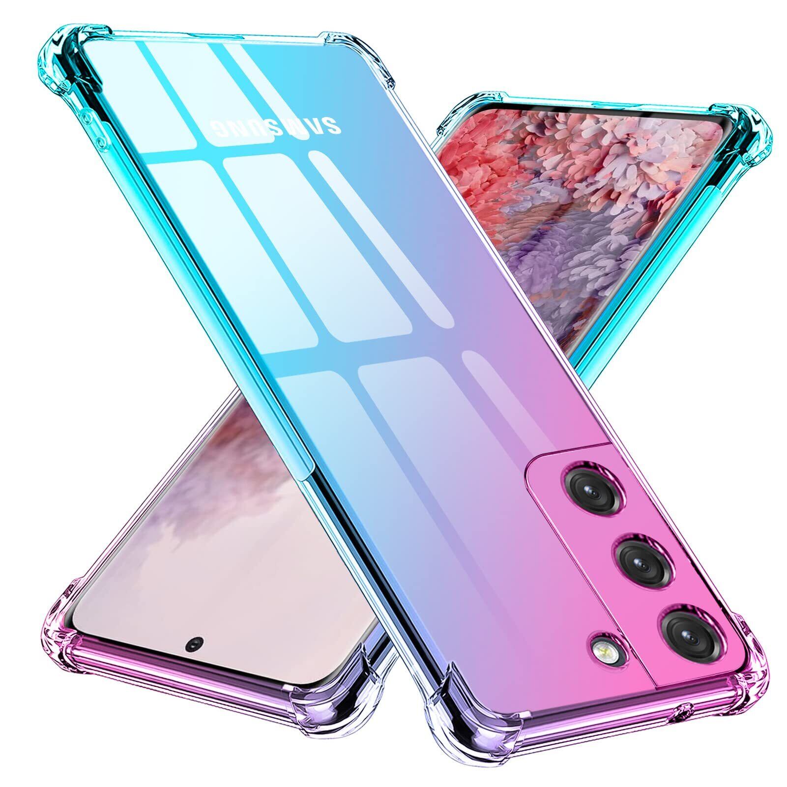 TMUJWS Galaxy S22 5Gケース シリコン クリア グラデーション ソフトケース 薄型 軽量 SCG13 ケース/SC-51C ケース 耐衝撃 全面保護 tpu 四隅空気衝突防止 レンズ保護 擦り傷防止 ストラップホール付き サムスン ギャラクシー s22 5g ケース 人気 携帯カバー ピンク+緑 MZ74-15