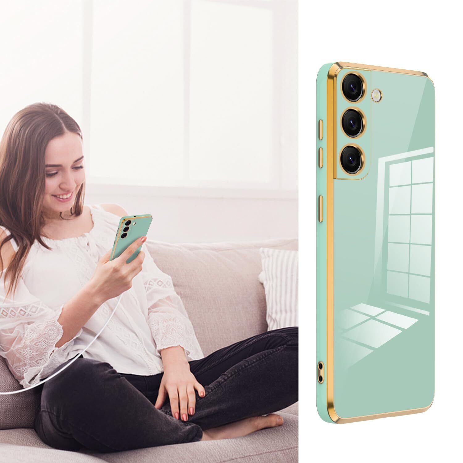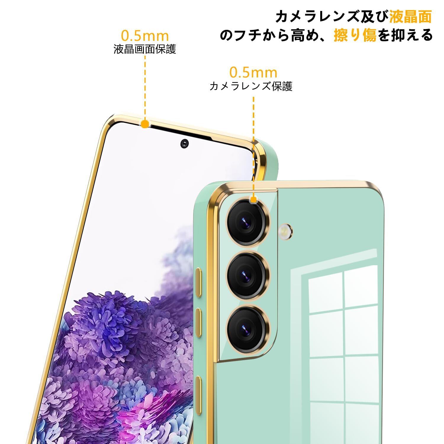 Galaxy S24 Ultra 用 ケース クリア 耐衝撃 TPU ケース レンズ保護 ソフトケース 透明 メッキ加工 ワイヤレス充電 ギャラクシーS24 Ultra 用 カバー ラップホール付き 薄型 軽量 メッキ枠 グリーン/ゴールド JP2-138