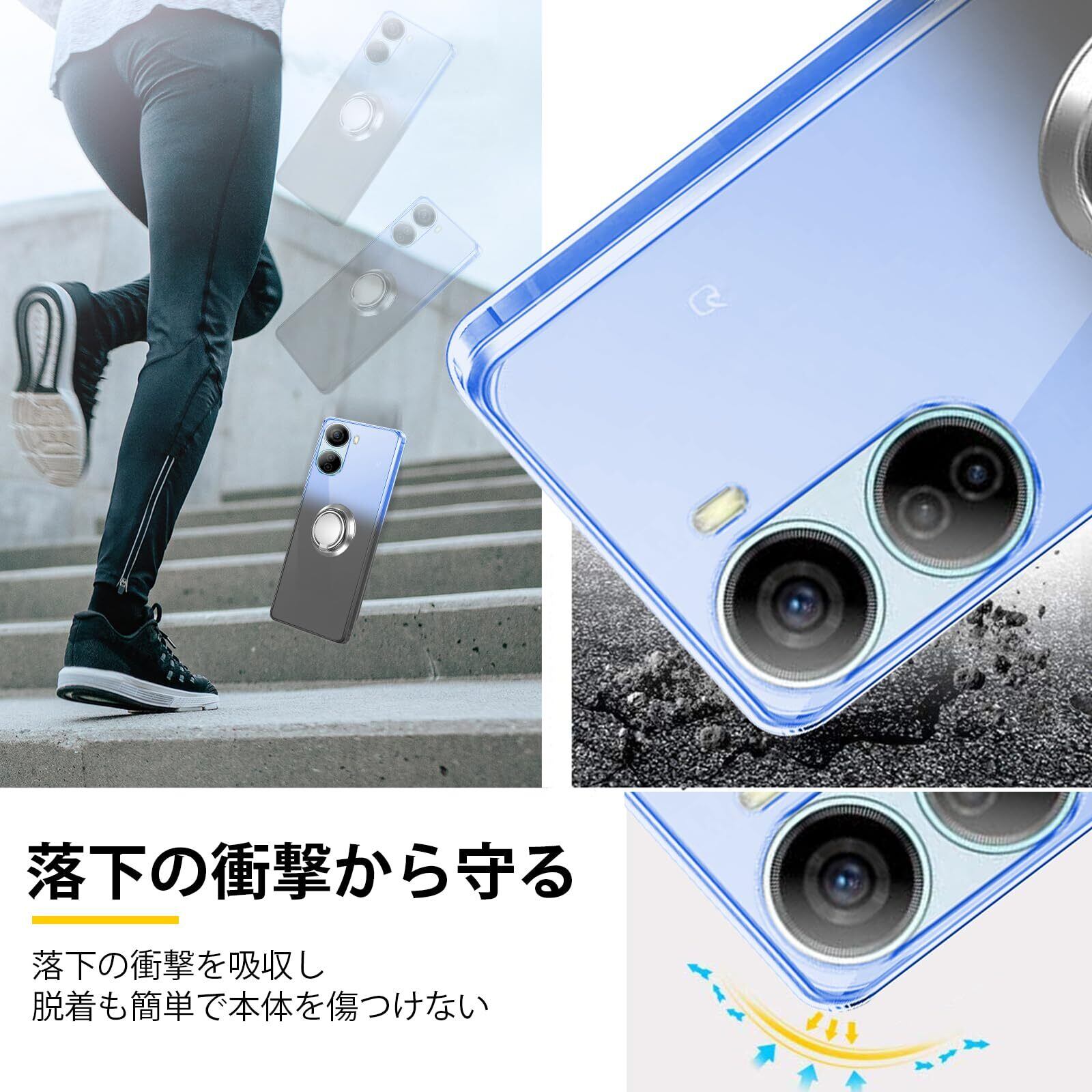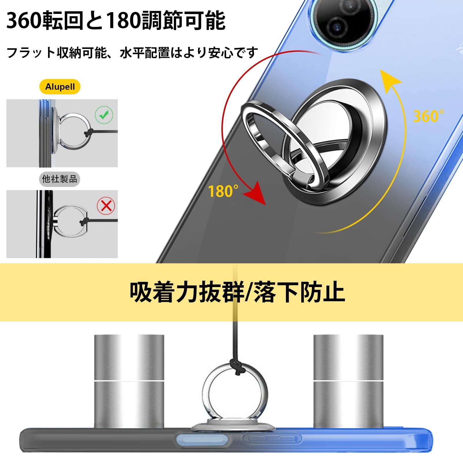 ZTE Libero 5G IV ケース リング TPU 薄型 軽量 シリコン グラデーション色 ケース スマホケース Libero 5G IV専用 耐衝撃 指紋防止 車載ホルダー対応 防塵 一体型 人気 携帯カバー 全面保護カバー ブルーブラック