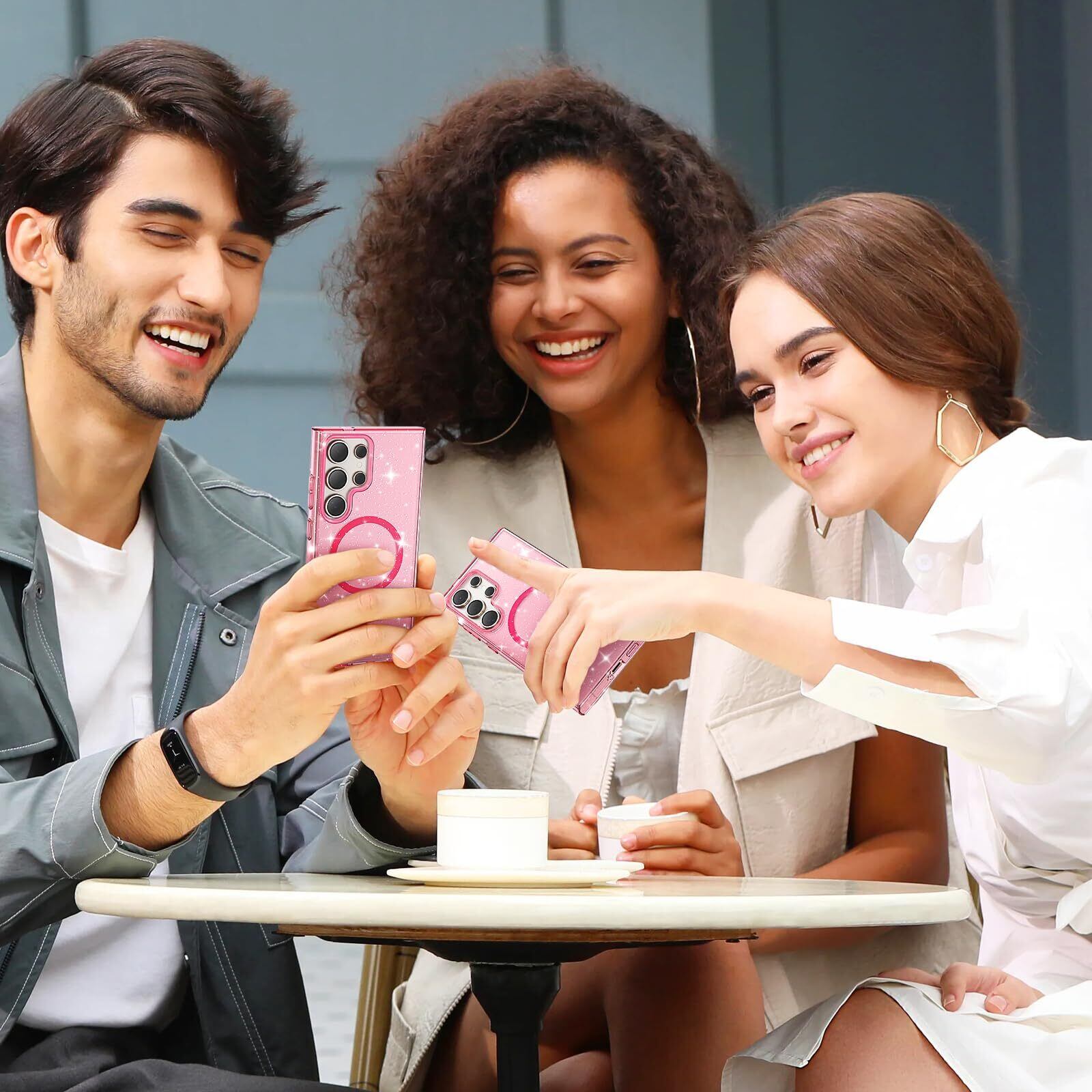 R-fun マグネット式クリアケース Samsung Galaxy S24 Ultra用 [Magsafe対応] [黄ばみ防止] [ミリタリーグレード保護] TPUケース Galaxy S24 Ultra 2024用 グリッターローズピンク