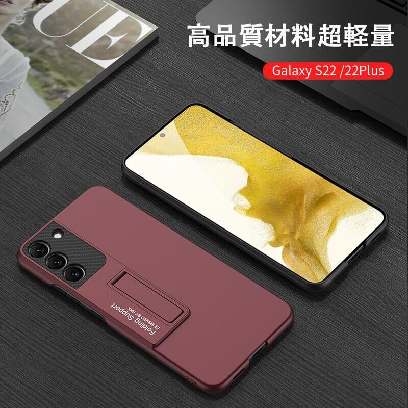 【在庫セール】【Mankera】 Galaxy S22 携帯ケース、スタンド付きケース、スマホケース、薄型 軽量ケース、レンズ保護、ワイヤレス充電対応、革新的で ケース(レッド)
