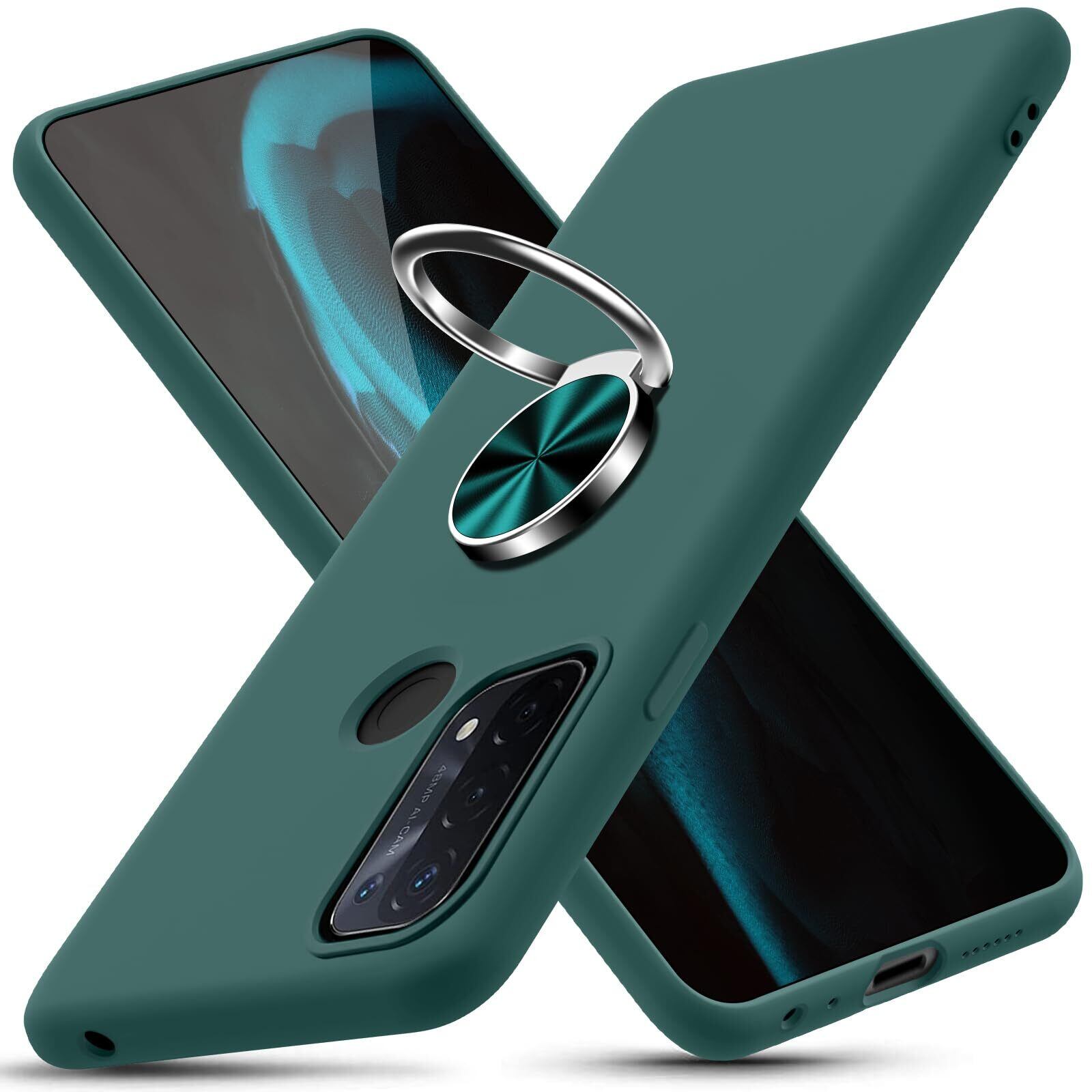 OPPO Reno5 A 用ケース リング 薄型 軽量 TPU シリコン リング付き ケース 360回転 車載ホルダー 耐衝撃 カメラ保護 オッポ reno 5a 用ケース カバー ストラップ穴付き 柔軟 手触り良い 指紋防止 着脱しやすい スマホケース ダークグリーン SJ3.161