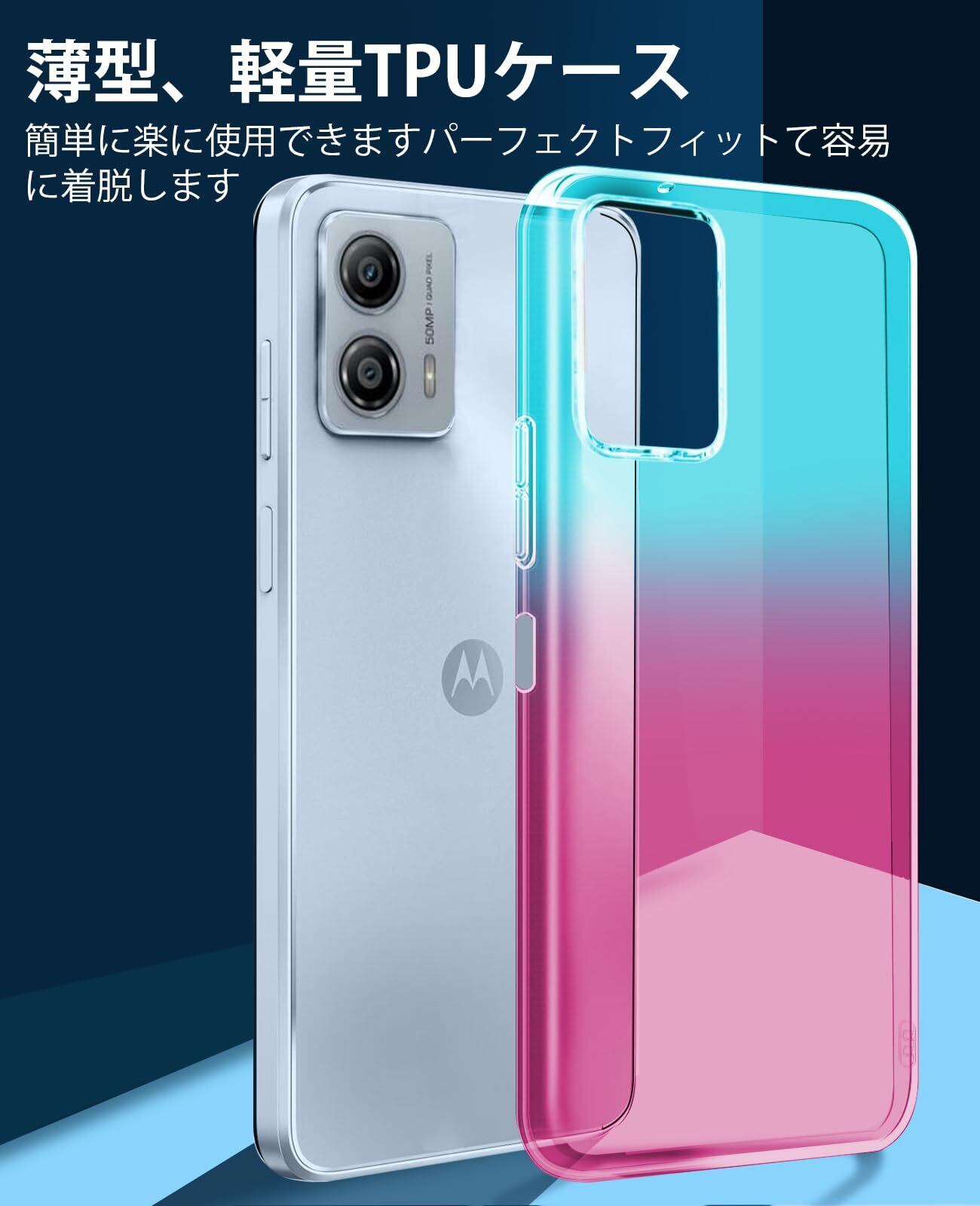【オシャレで高級感ある外観】MOTO G53j 5G/MOTO G53y 5G/MOTO G53 5G用ケースはグラデーションのデザインで、端末の色により、違う色効果を現れ、MOTO G53j 5G/MOTO G53y 5G/MOTO G53 5Gの美しいデザインをより一層印象づける魅力がある。本体とピッタリ密着して違和感がない一体感がすごく格好いいです。