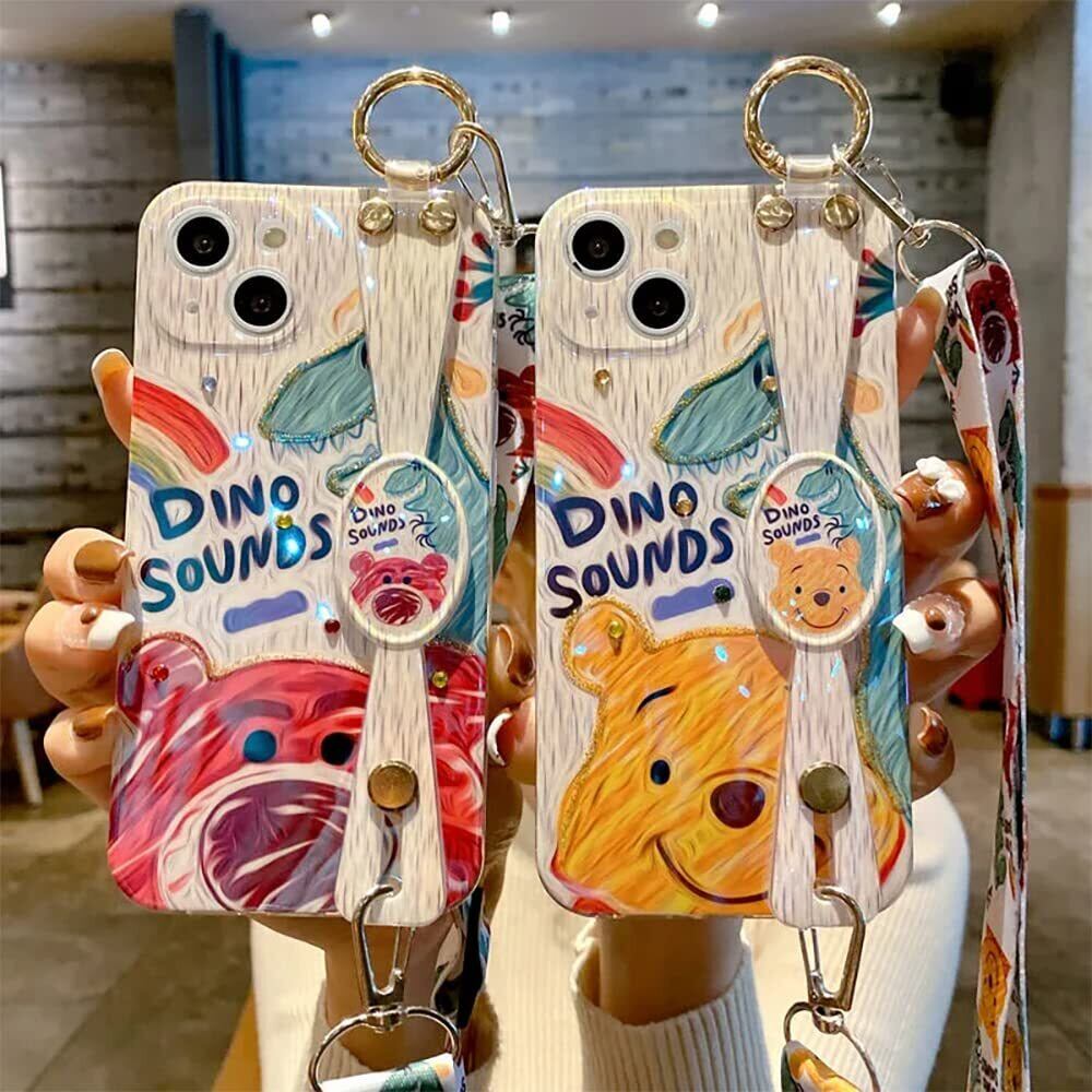 【特価商品】くまのプーさん スマホケース iPhone 14 Plus 用 ケース 柔らかい殻 リストバンド ショルダーストラップ 首かけストラップ スタンド機能 可愛い TPU保護カバーア 保護ケース 締縄 アイフォン 14 Plus 用 ケース 携帯ストラップ