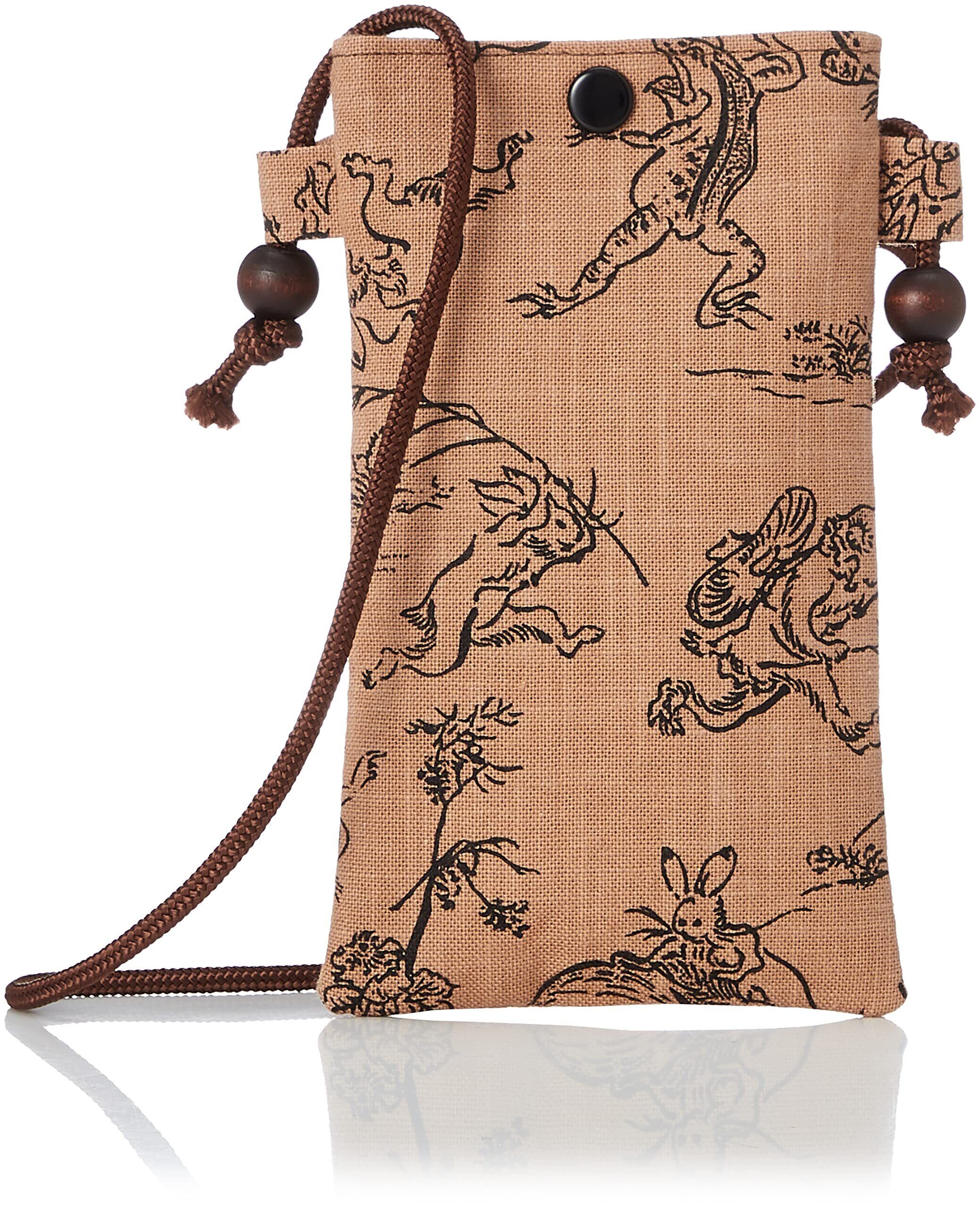 丸全(Maruzen) スマホ小物入 鳥獣戯画/茶 3.5×1.5×18.5cm