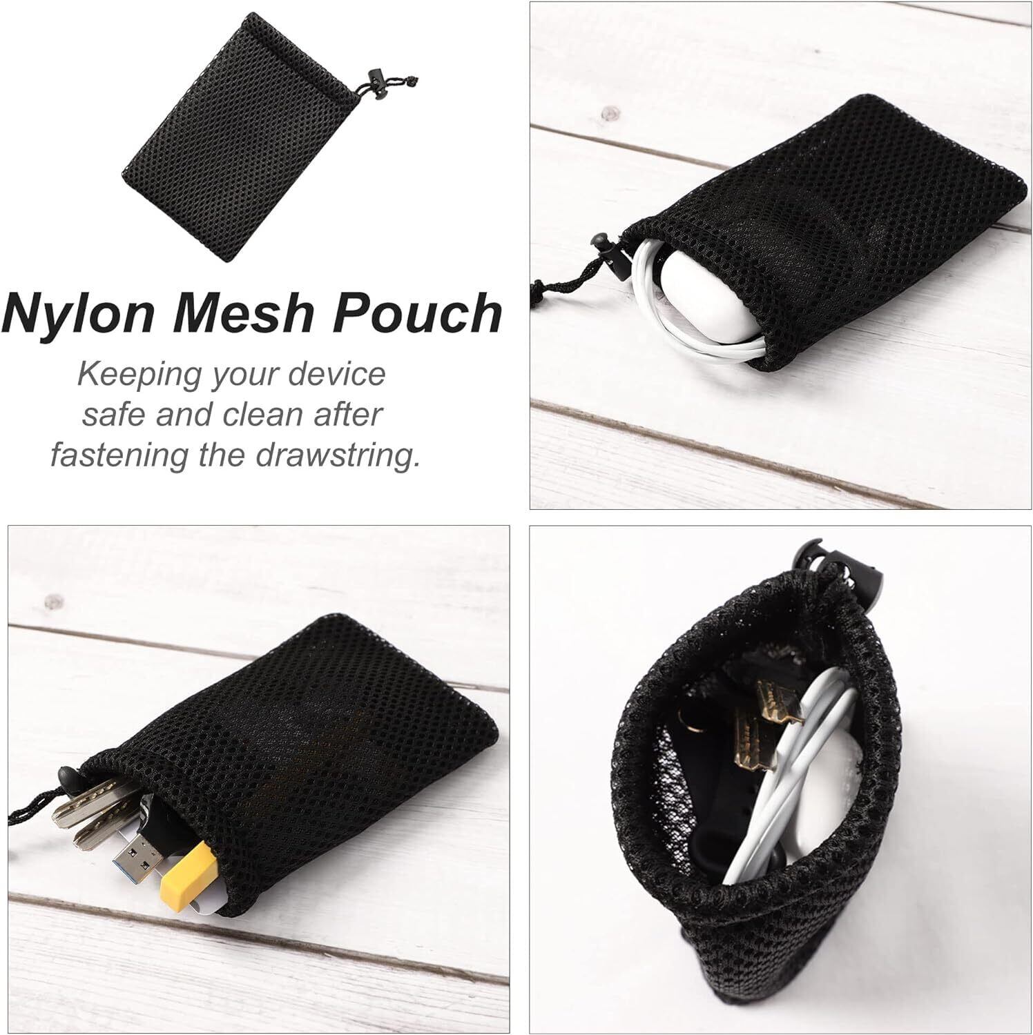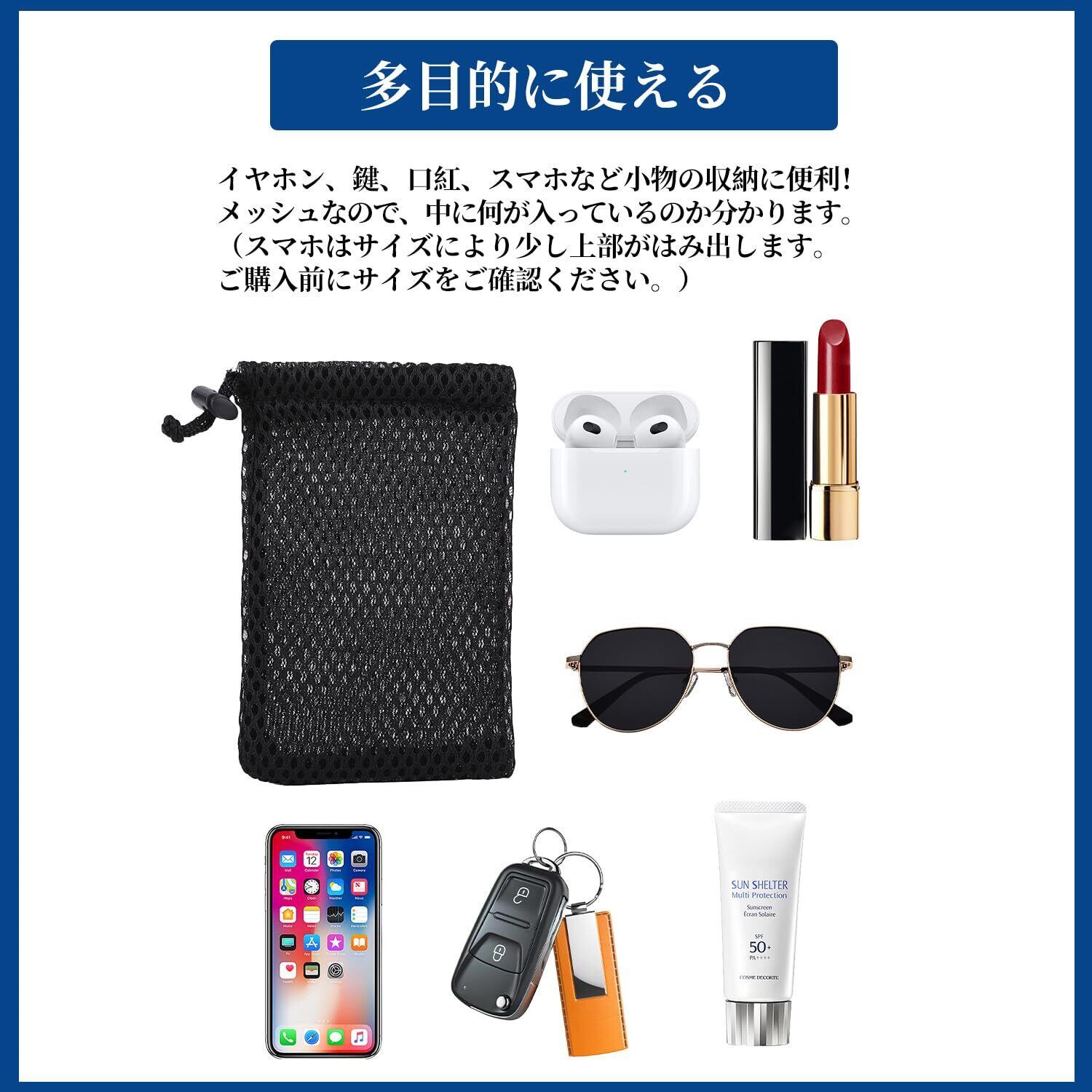 多目的に使えるメッシュ収納バッグ。 バッグの整理に最適です。 折りたたみ式でコンパクトで省スペースなのも嬉しい! 多用途:ヘッドフォン、鍵、口紅、スマホなどの小物を収納できる小型ウエストバッグです。 メッシュなので中が丸見えです。 (スマートフォンのサイズには多少の誤差があります。ご購入前にサイズをご確認ください。) 【簡単ワンタッチ開閉】巾着紐付き。ストラップを動かすだけで素早く開閉できます。ストラップは荷物の大きさに合わせて調整可能です。真ん中に置きます 持ち運びが簡単:軽量でコンパクトなので、持ち運びが簡単です 収納袋は折りたたみ可能です バッグの整理に使用するのに非常に便利です 小物を整理した後、バッグ内のアイテムが失われることがなく、簡単です洗濯可・洗濯機洗い可能:汚れは簡単に丸洗いできます。また、洗濯ネットを使用すれば洗濯機で丸洗い可能です(最初は色落ちする場合がありますので、他の衣類と分けて洗ってください。) 柔らかい素材】厚手のメッシュ素材です。バッグのメッシュは柔らかく厚みがあり、型崩れしにくいです。柔らかい手触りとクッション性があり、大切なものを傷や衝突から守ります。(防水・防水ではありません。)シンプルなデザイン:無地のシンプルなデザインです。老若男女問わずお使いいただけます お好みの使い方:クラッチとしてもバッグとしても使えてとても便利です 水筒や化粧品、洗顔料などを整理して収納できます衛生用品、事務用品、事務用品などのほか、旅行や出張時の荷物の整理にも、また車の中でも大活躍します 【商品詳細】 素材:ナイロン生地 伸縮性:ややあり 寸法(外寸):幅9×長さ13cm、幅10×長さ20cm、幅12×長さ15cm、幅15×長さ20cm(商品により誤差が生じる場合がございます) ±0.5cm程度。