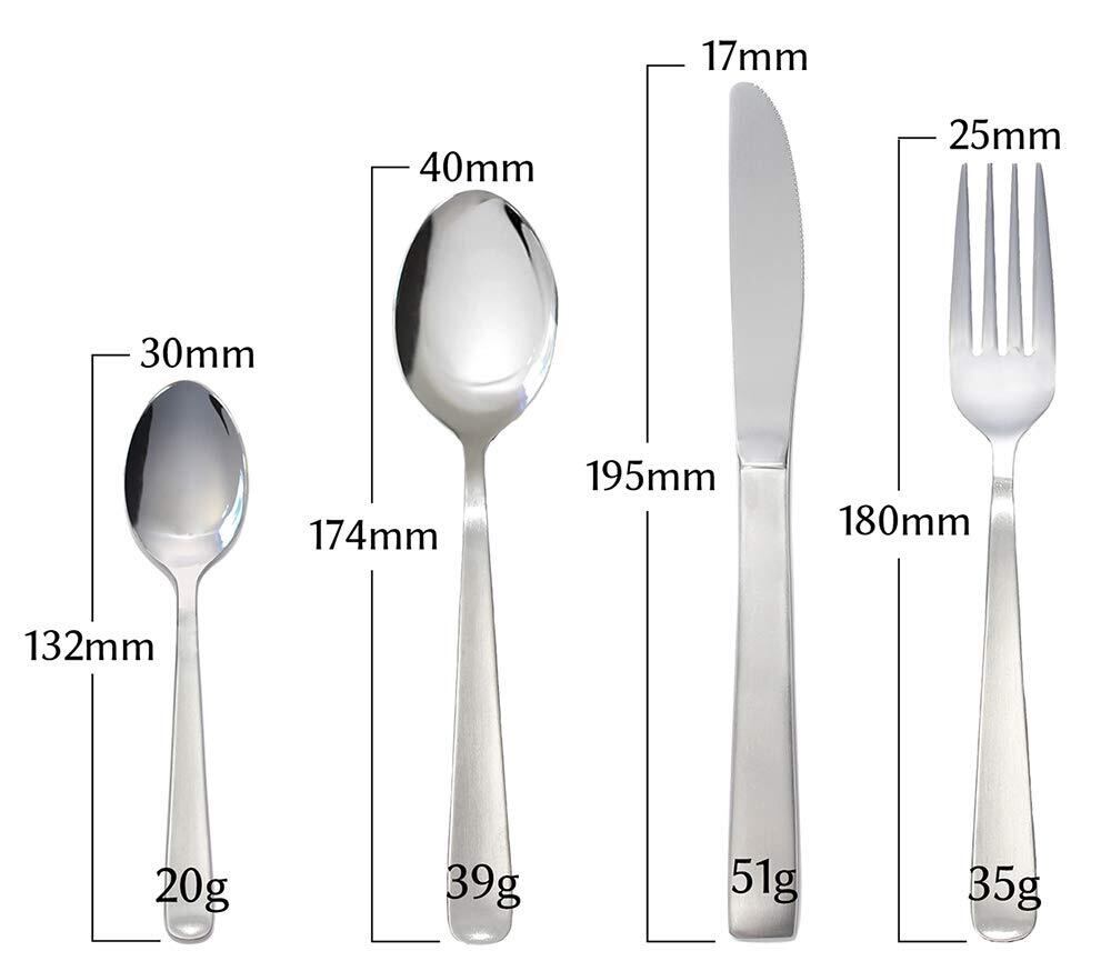 付属コンポーネント スプーン2本、ティースプーン2本、ナイフ2本、フォーク2本