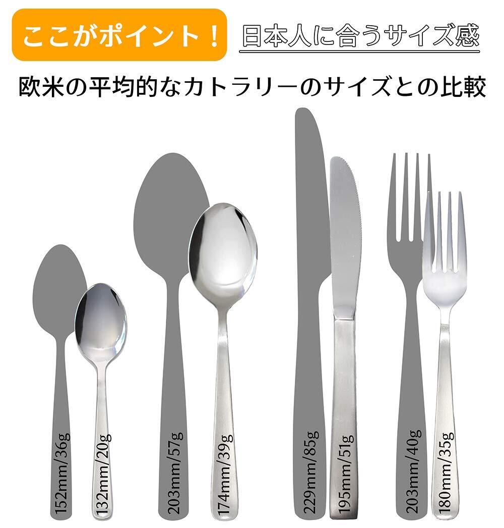 飽きのないシンプルなデザイン。持ち手の部分などの余計な装飾が付いていないシンプルで使い勝手の良いカトラリーセット。
