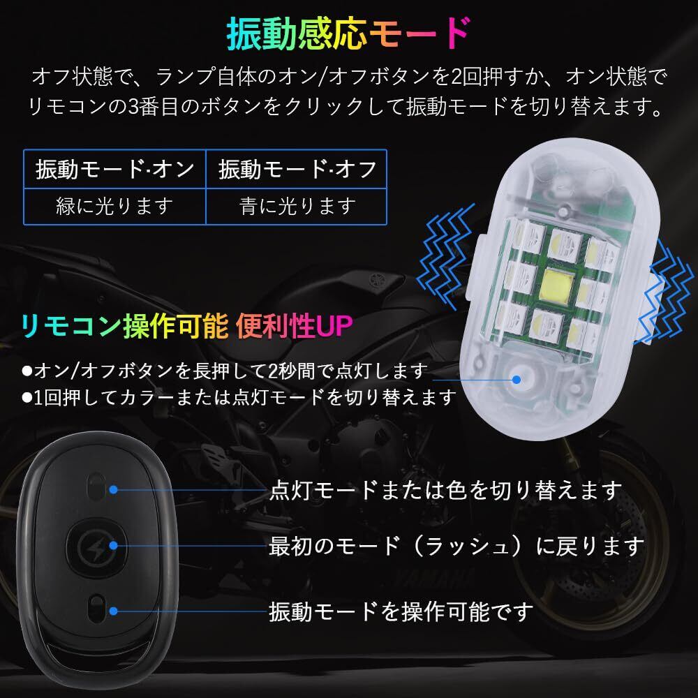 MAZERO 9連SMD爆光 フラッシュ 7色 RGB ストロボライト 点滅 振動感応 白 赤 緑 ブルー イエロー パープル アイスブルー LED バイクライト 補助灯 警告灯 ヘッドライト リモコン付き ドローン 自転車 バイク 自動車 汎用 4個セット