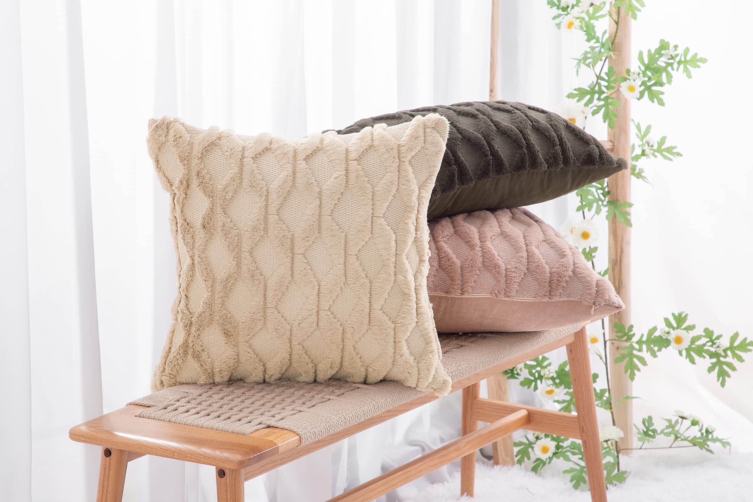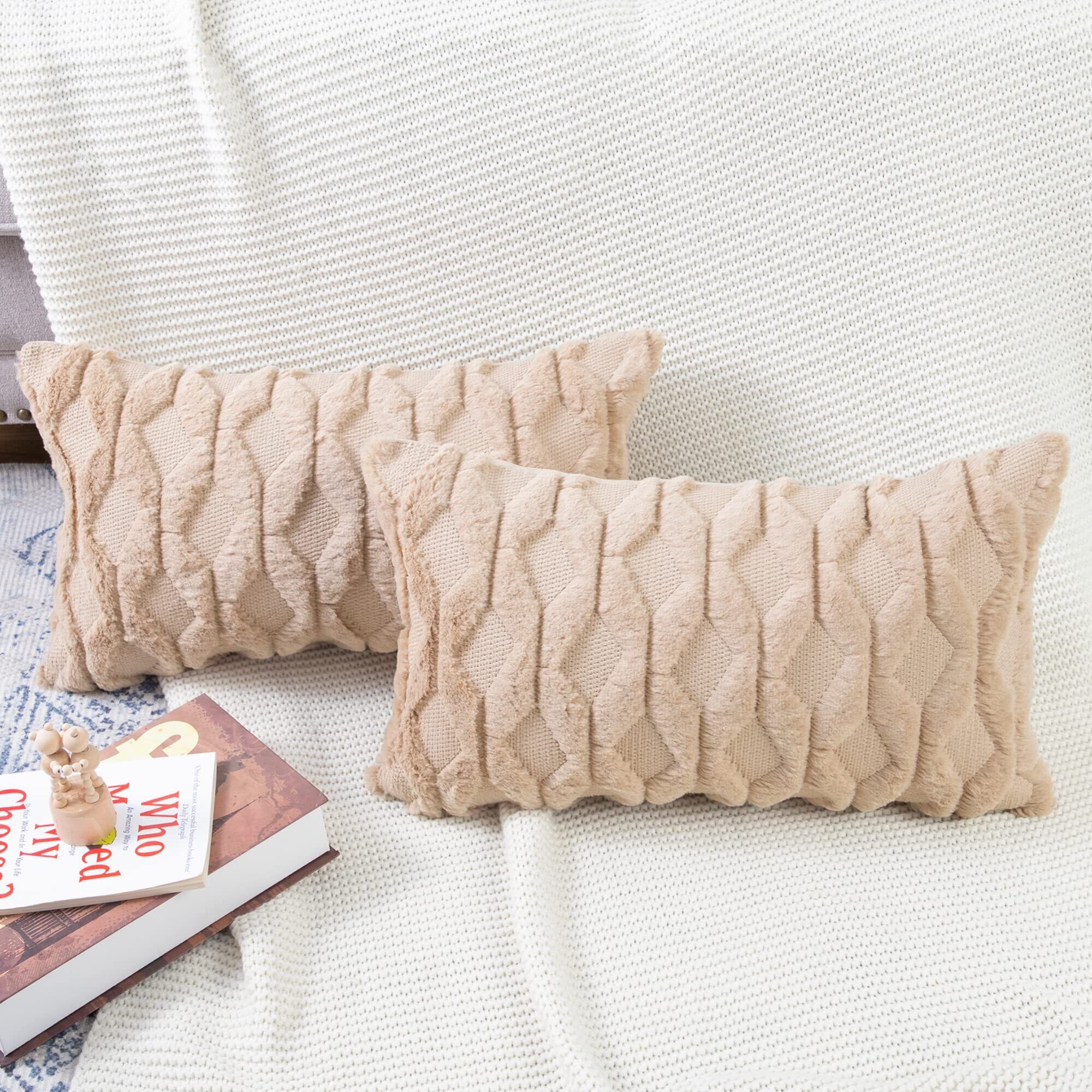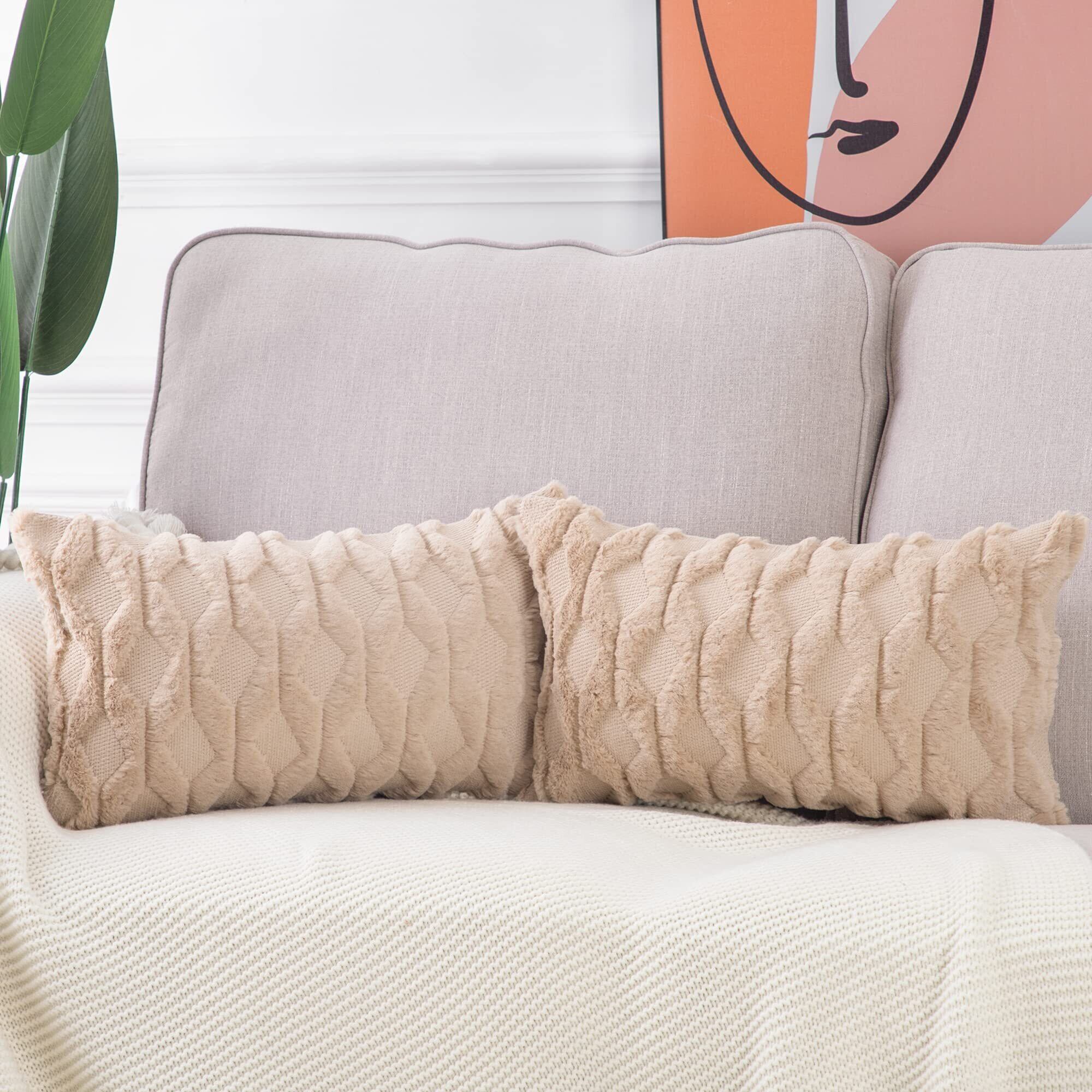 Madizz クッションカバー 2枚セット 柔らかい ぬいぐるみ ショートウール ベルベット 装飾的な 枕カバー 贅沢 スタイル クッションケース ソファ用 寝室用 30*50 cm カーキ