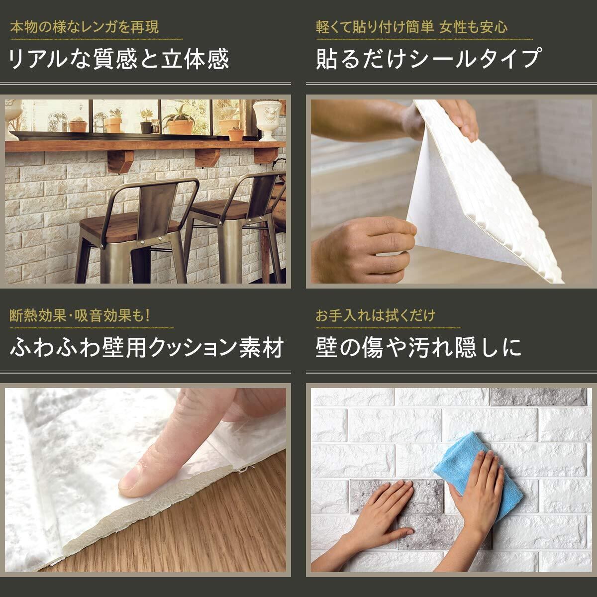 【商品の特徴】軽くてやわらかいクッションタイプの壁紙です。粘着シールのため台紙を剥がして壁に貼るだけ。好きな部分でカット出来るので、スペースに合わせて簡単に模様替えできます。