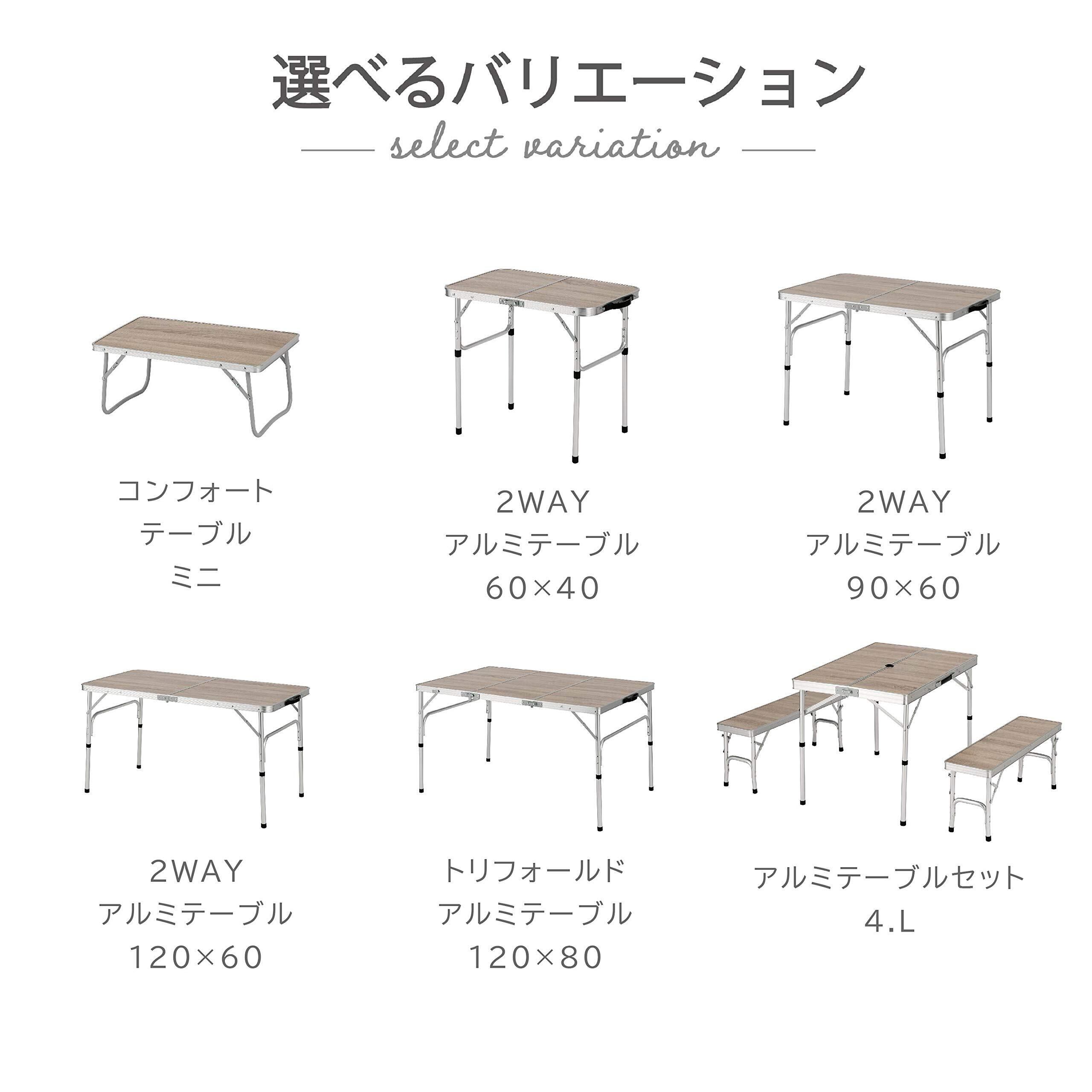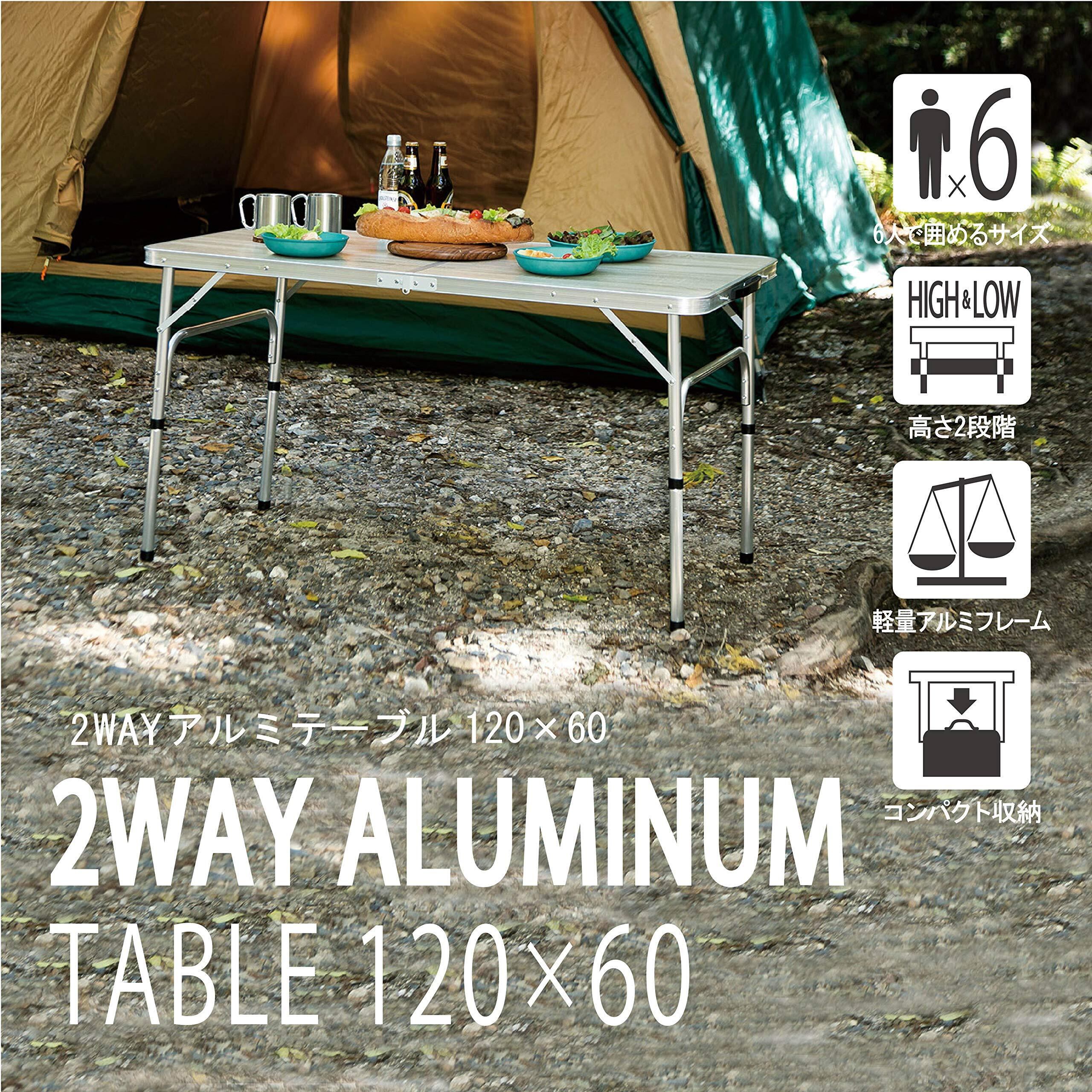 レジャーやアウトドアにぴったりな2WAYアルミテーブルです。