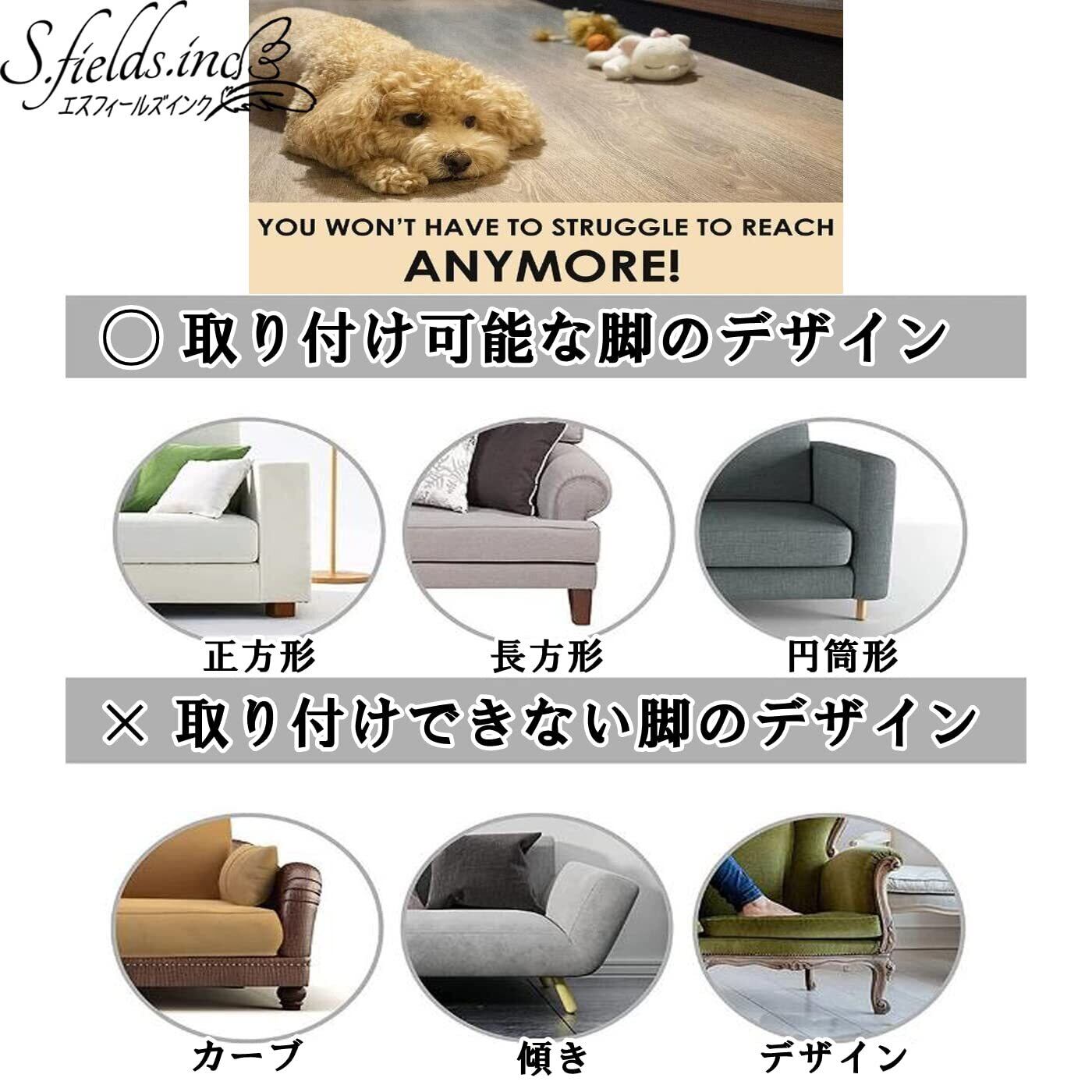 ベッド・ソファー以外にも、カウチ、椅子、テーブル、サイドボード、収納ラックなど様々な家具にお使いいただけます。※脚のデザインによっては取り付けができない場合がございますので、詳しくは掲載画像をご覧ください。